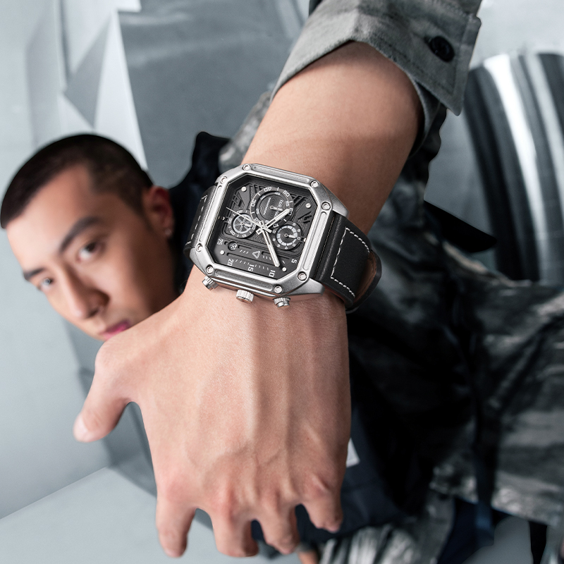 马克华菲手表男士男款青少年学生机械表方形男表生日礼物送男友