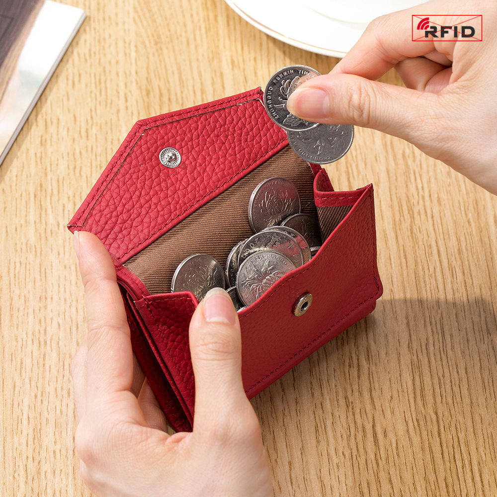 新款RFID短款钱包女款真皮三折钱夹ins日式迷你多卡位卡包零钱包