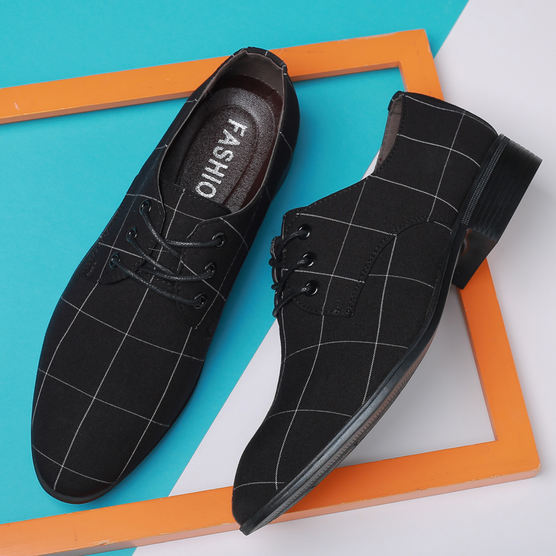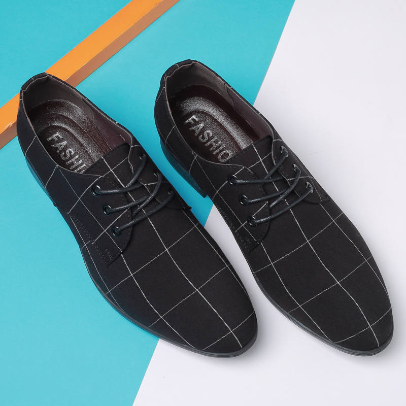 男士皮鞋潮流布面百搭学生韩版英伦正装发型师尖头透气西装休闲鞋