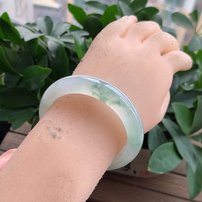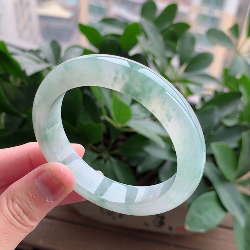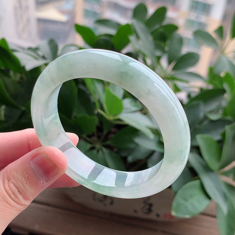 缅甸A货天然翡翠 老坑冰种飘花正装正圈手镯53-54圈口