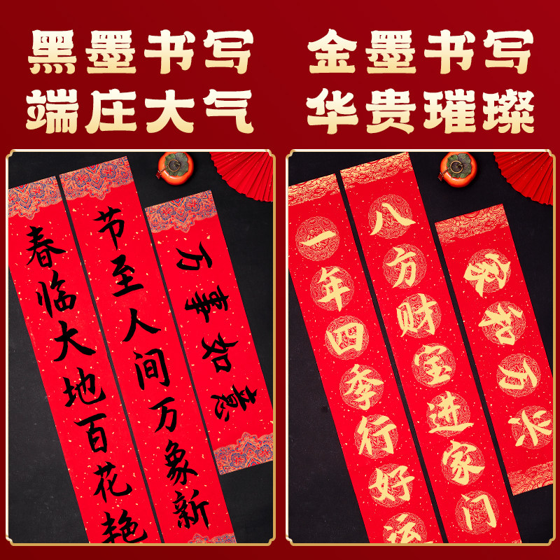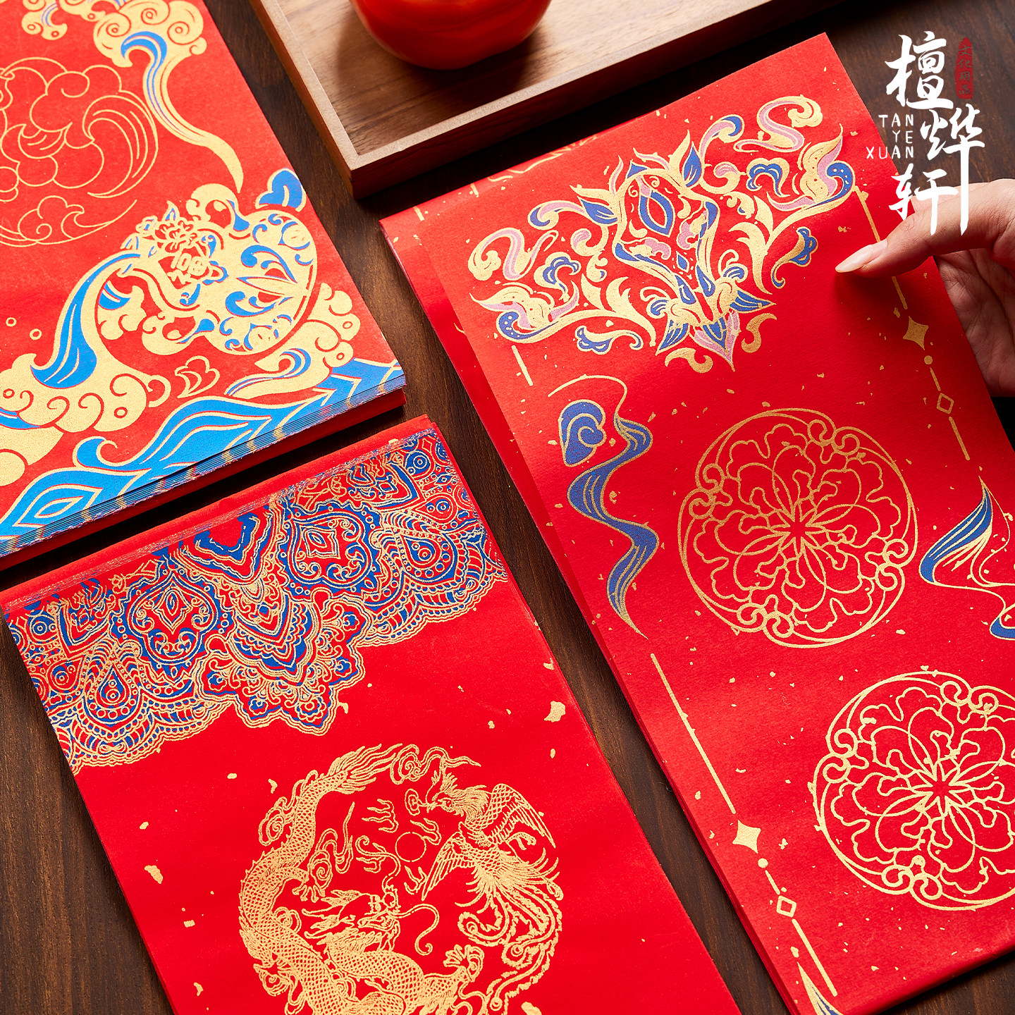 蜡染对联纸2026马年新款万年红宣纸专用纸空白手写七言春节高档加厚写福字红纸斗方龙凤书法作品纸春联纸自写