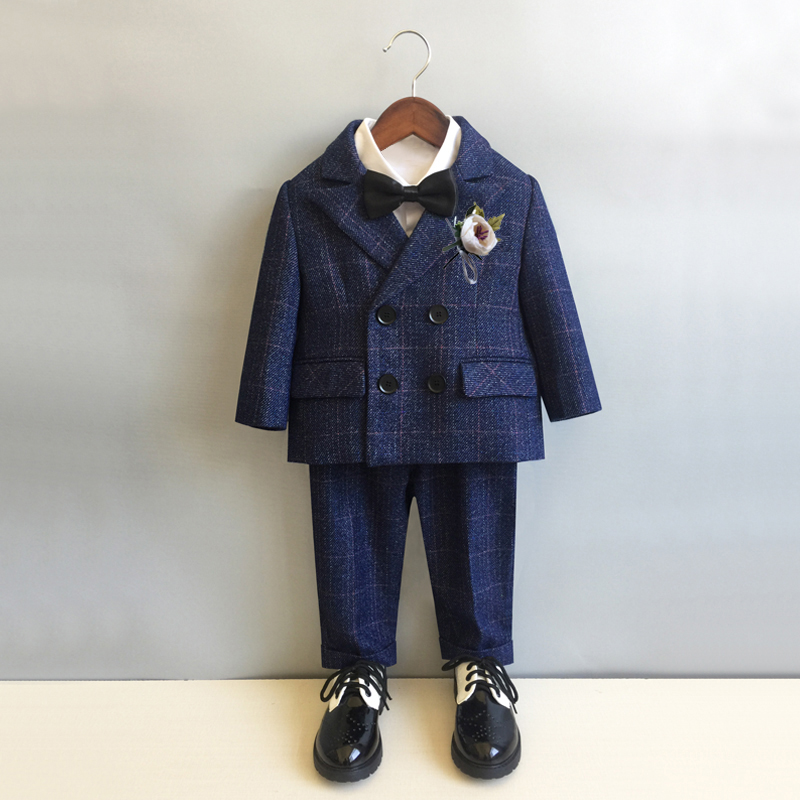 周岁礼服男宝男童小西装套装秋冬洋气男孩英伦格子西服儿童演出服