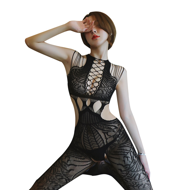 时尚小众纯欲风火辣激情 提花网衣开档连体衣镂空性感睡衣 5022