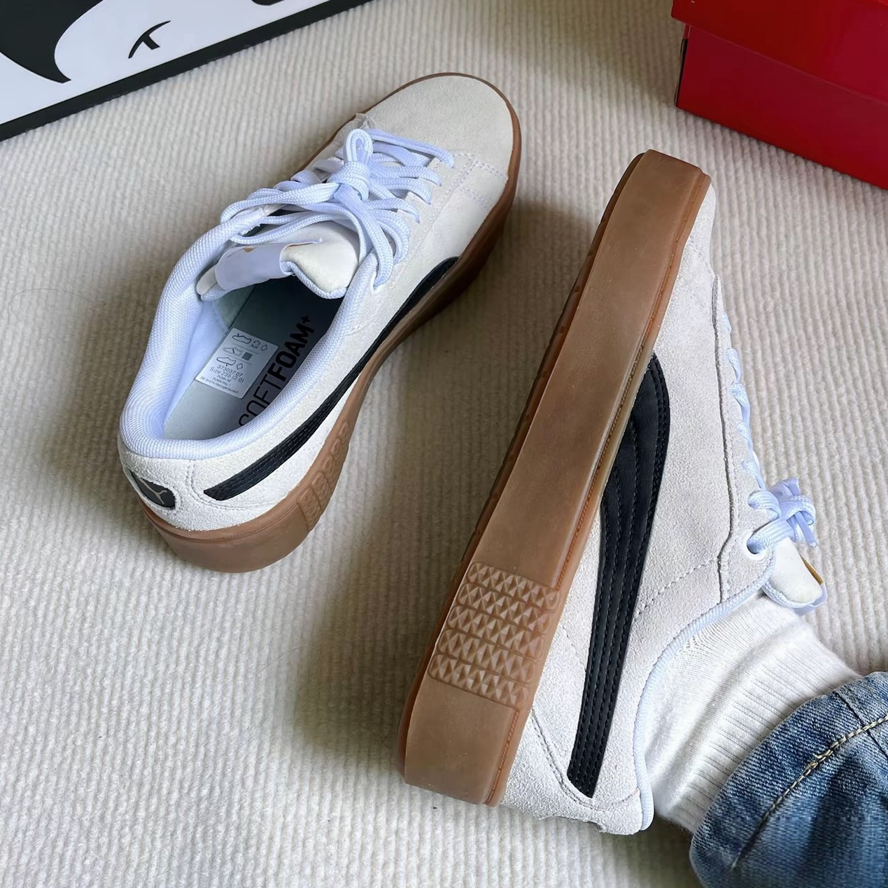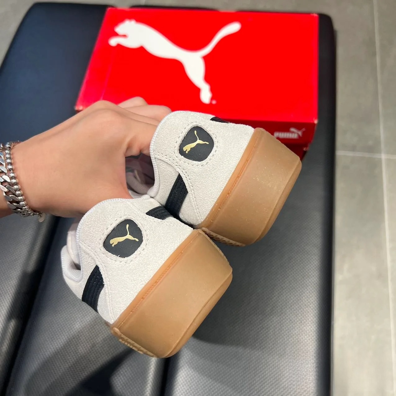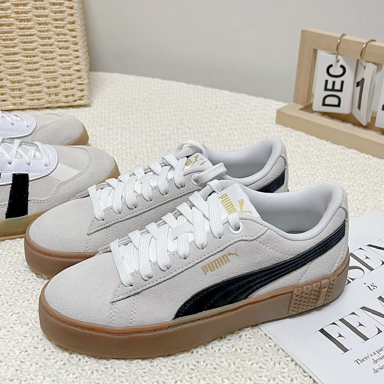 PUMA彪马女子低帮白棕松糕鞋蕾哈娜厚底增高百搭反毛皮板鞋373037