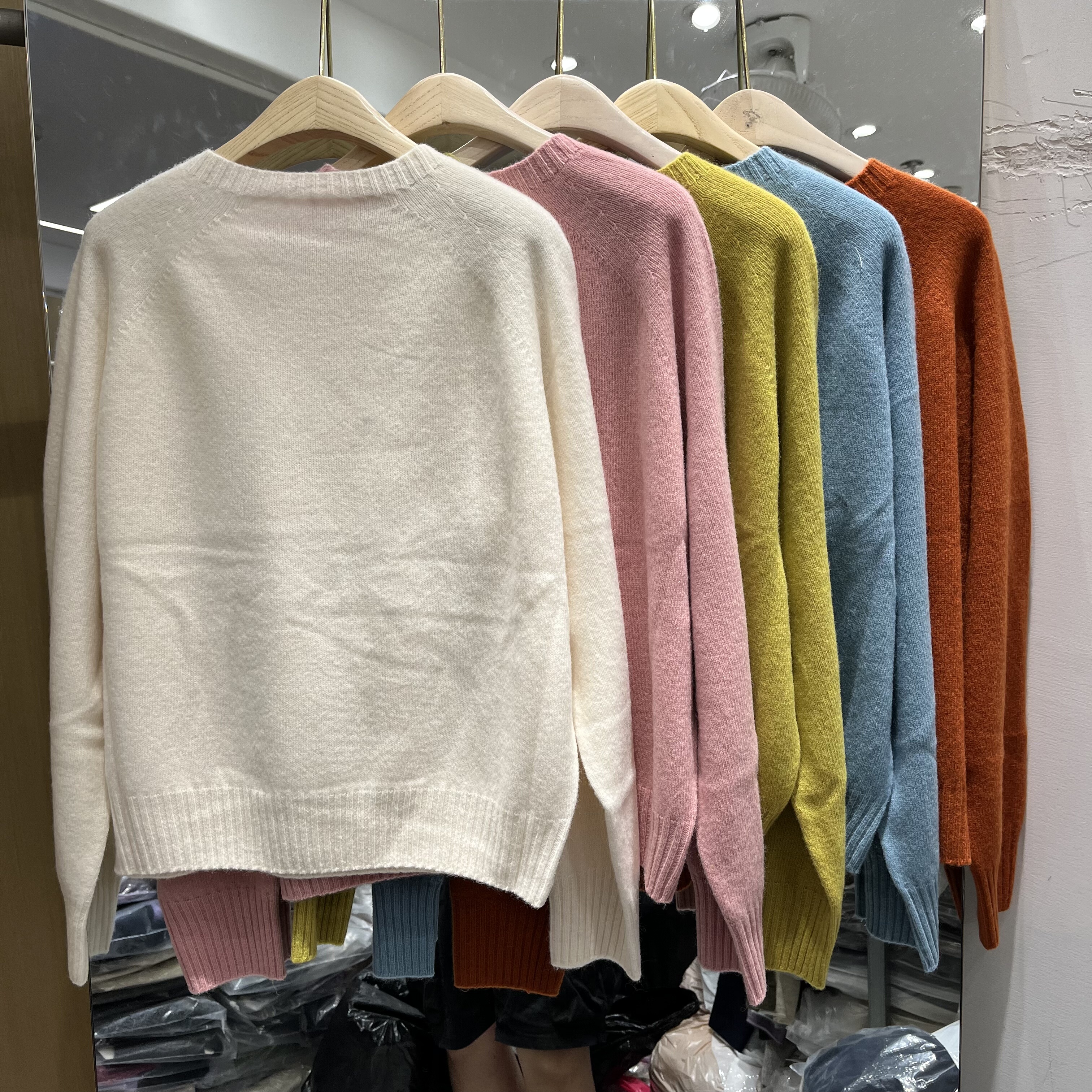 欧洲站2025秋季新款女士圆领简约纯色全羊毛长袖毛衣欧货宽松针织