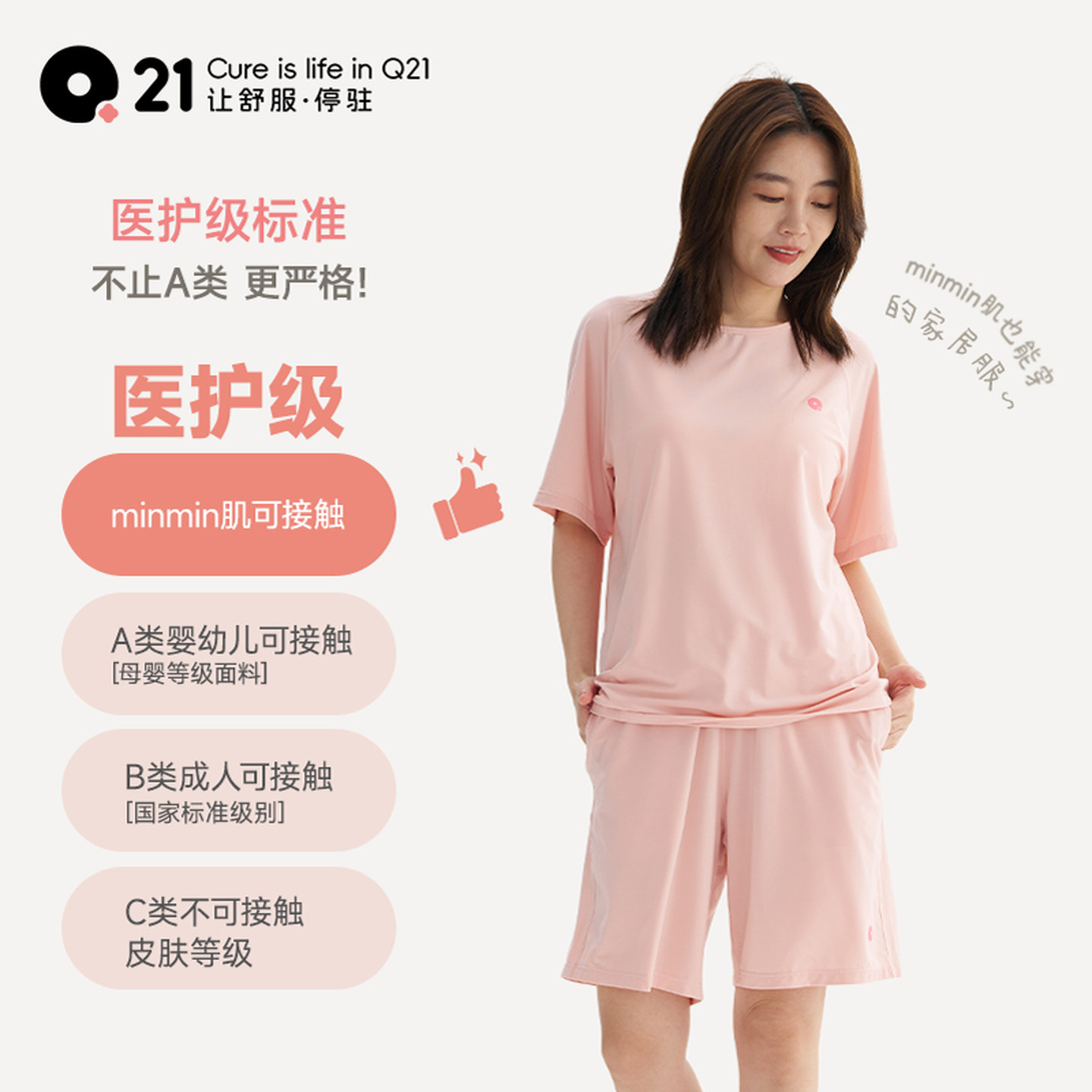 Q21女士家居服透气速干睡衣套装胸垫款短袖短裤A类春夏季空调服