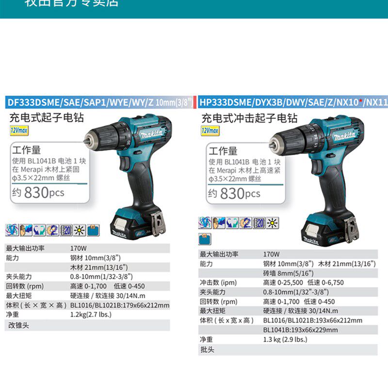 牧田DF333/333手持无线充电钻2V锂电无刷家用多功能电动螺丝刀