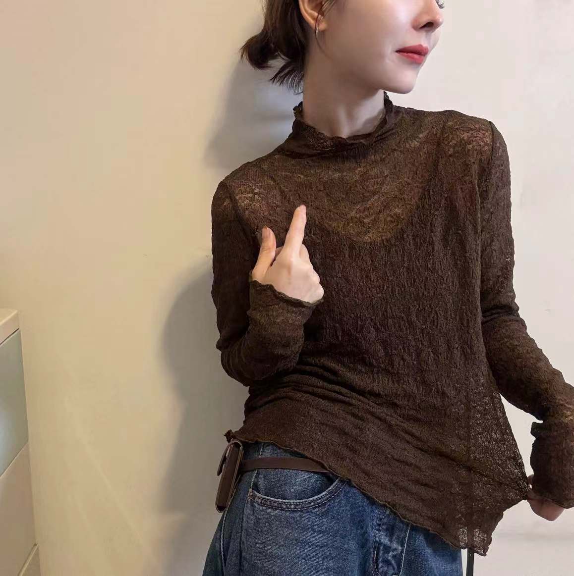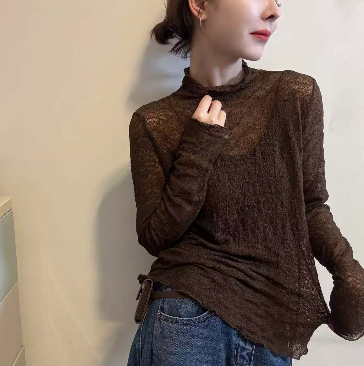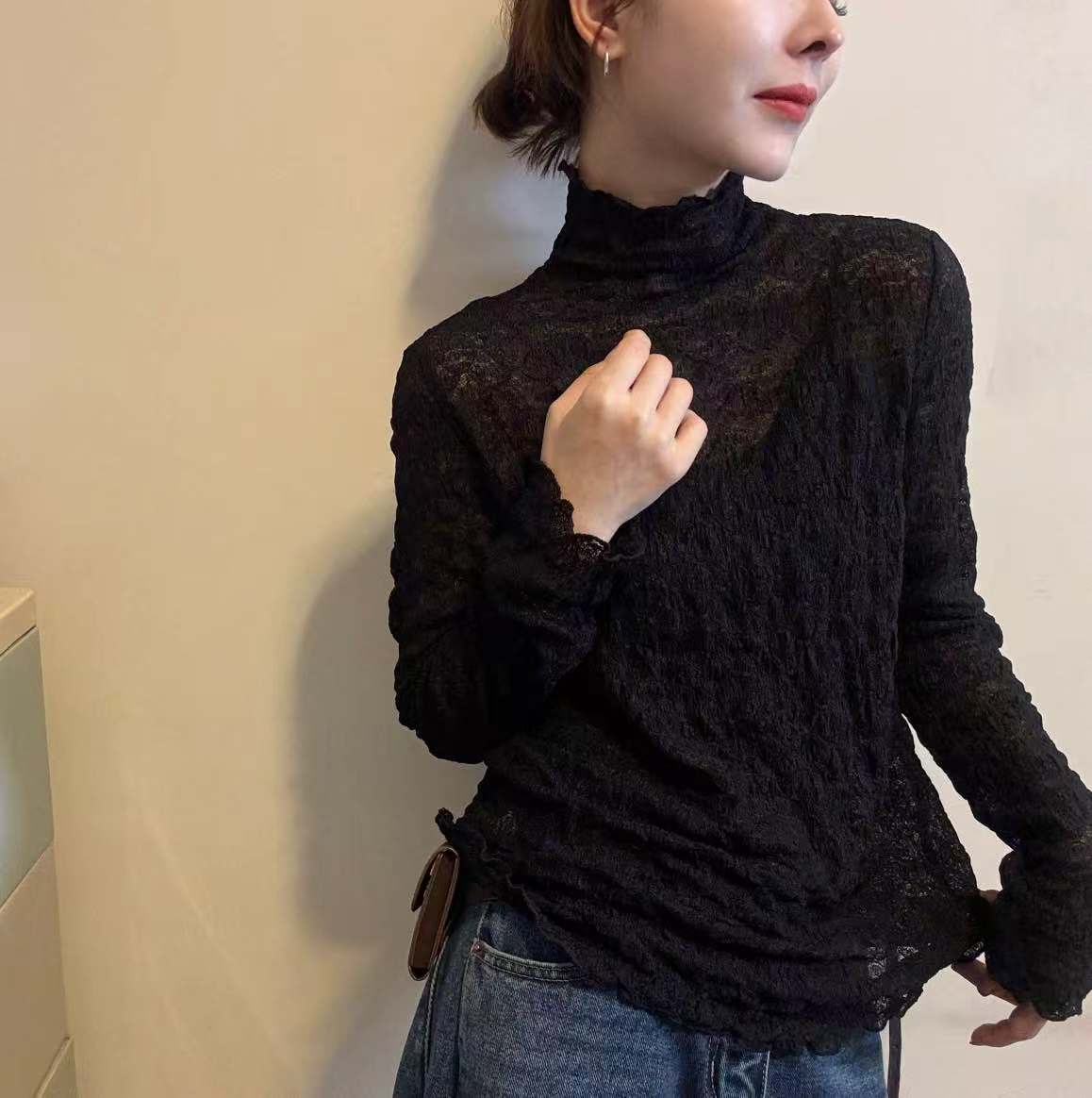 性感微透视蕾丝打底衫女2025年新款秋冬长袖内搭外穿高级感小上衣
