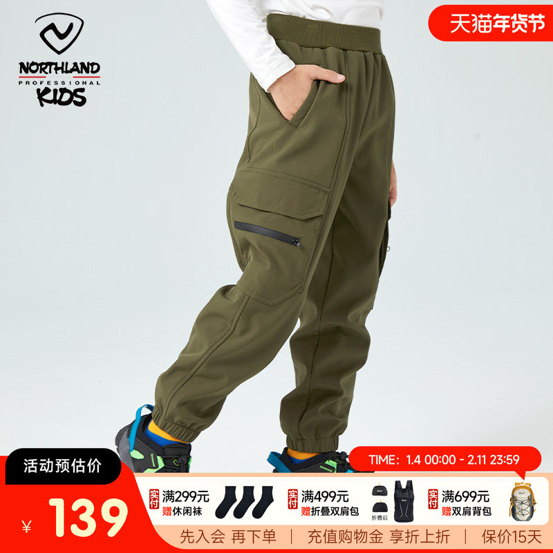 诺诗兰童装男童软壳裤秋冬新款加绒儿童加绒防风防泼水户外保暖裤