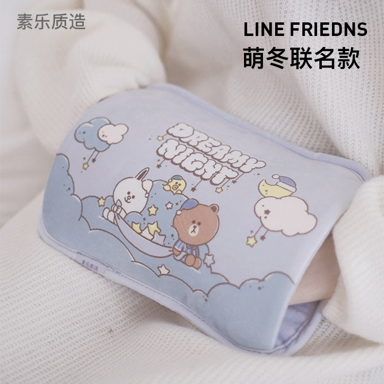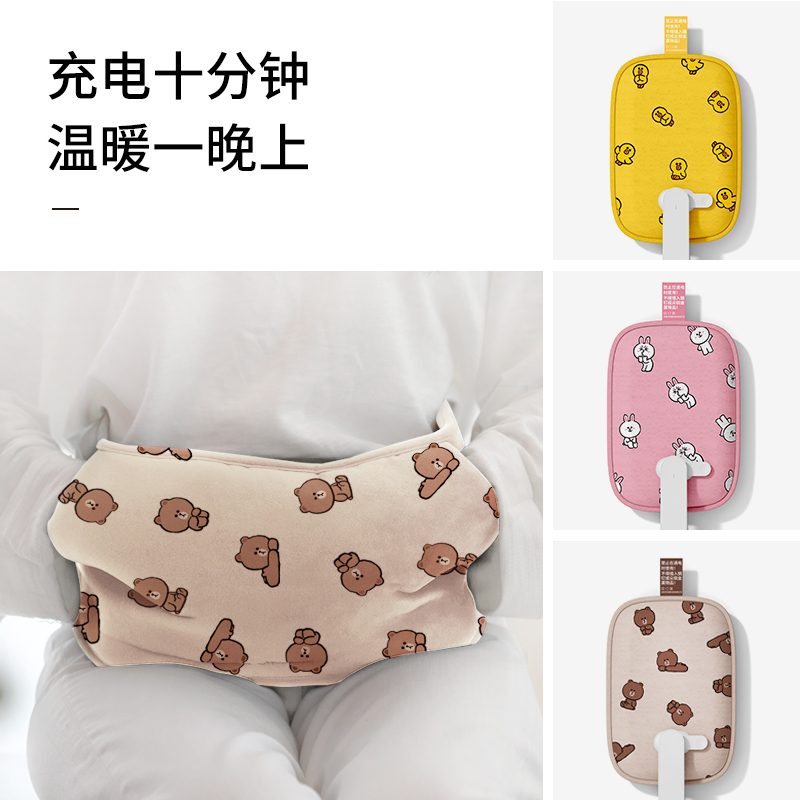 素乐布朗熊line热水袋石墨烯暖宝宝充电热宝宝暖水袋可爱毛绒女敷电暖宫暖肚子暖手宝自发热卡通2023新款防爆