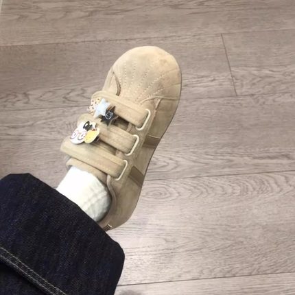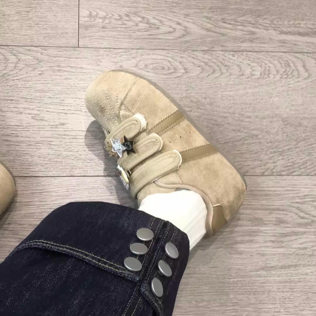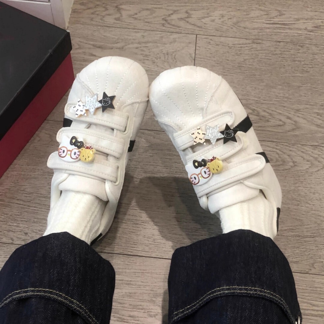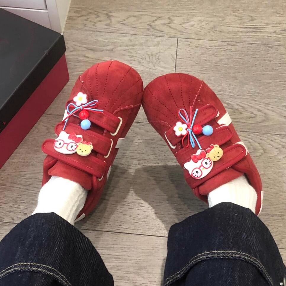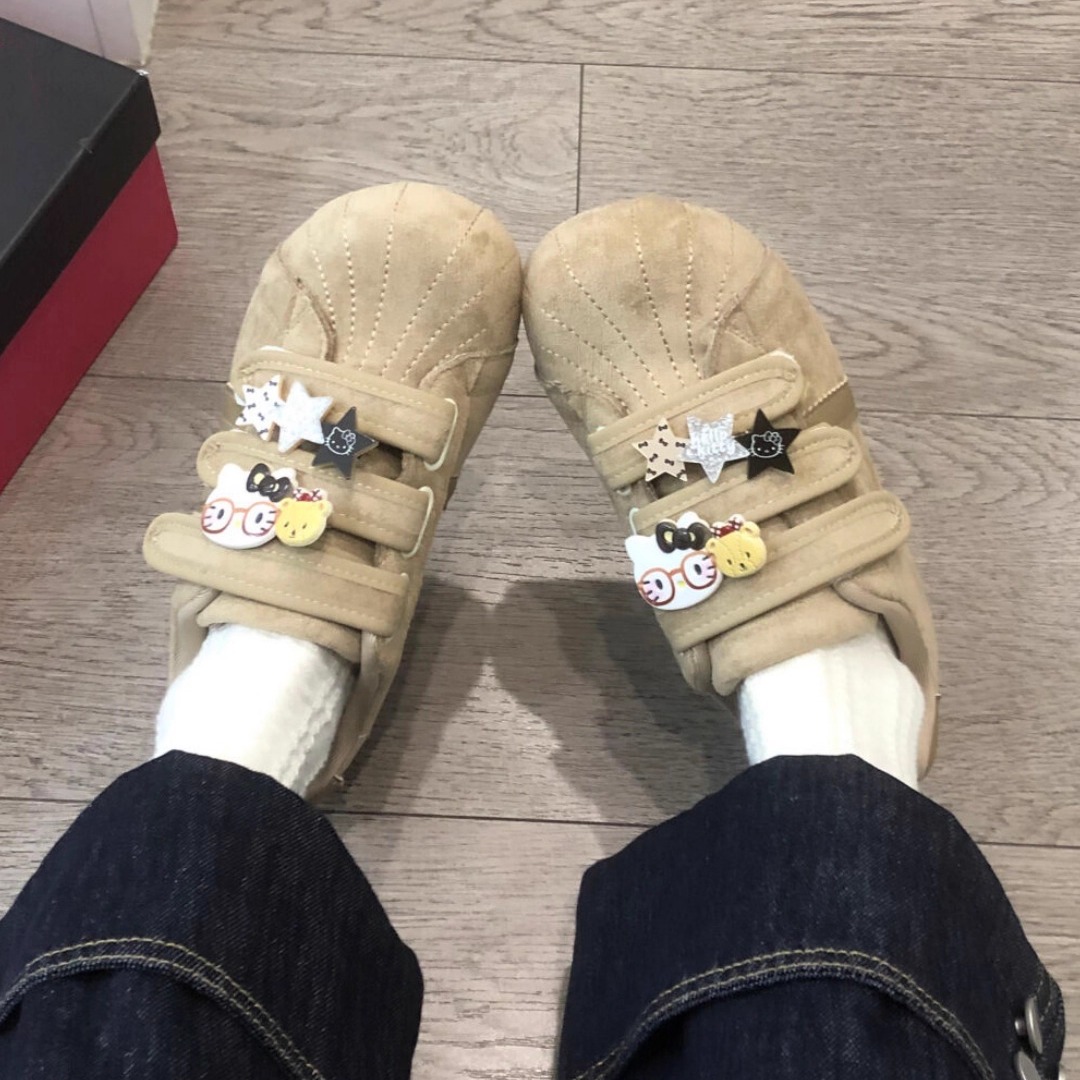 国潮小众原创魔术贴Kitty帆布鞋女2025新款一脚蹬懒人鞋德训鞋