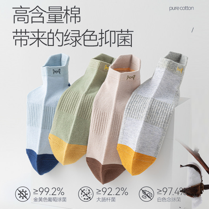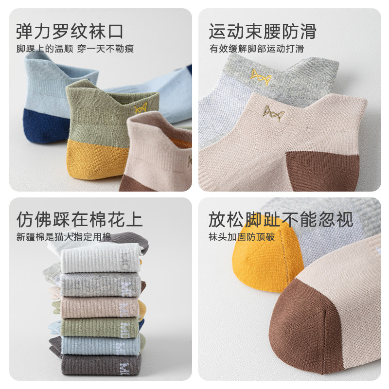 猫人男士纯棉袜子2025新款全棉防臭抗菌男款春夏季男生运动短筒袜