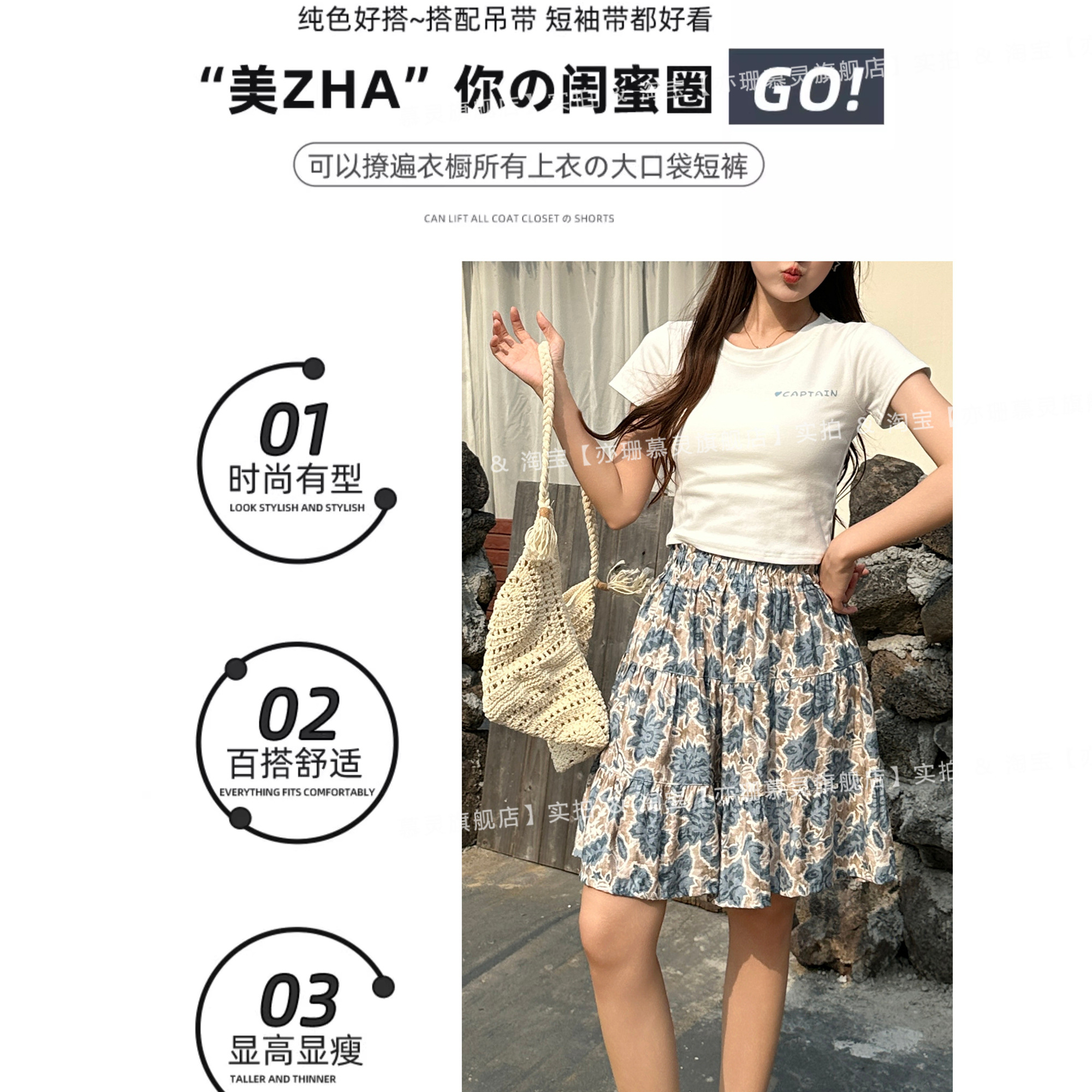 碎花a字短裙女2025夏季新款甜美半身裙高腰大码显瘦防走光裤裙