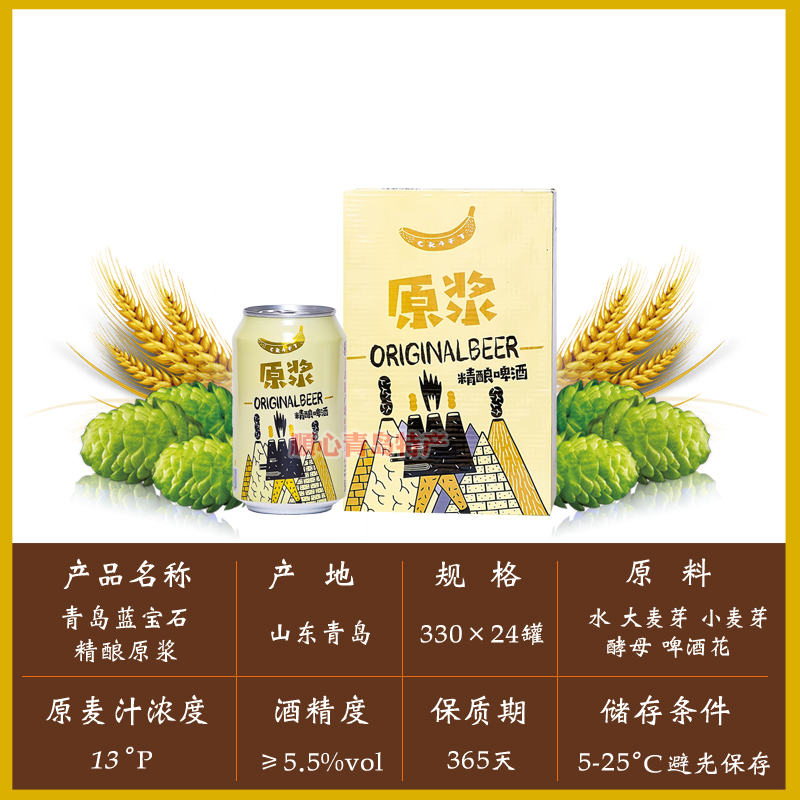 青岛蓝宝石精酿原浆啤酒330mlX24听/箱全麦小麦白啤高浓度浑浊型