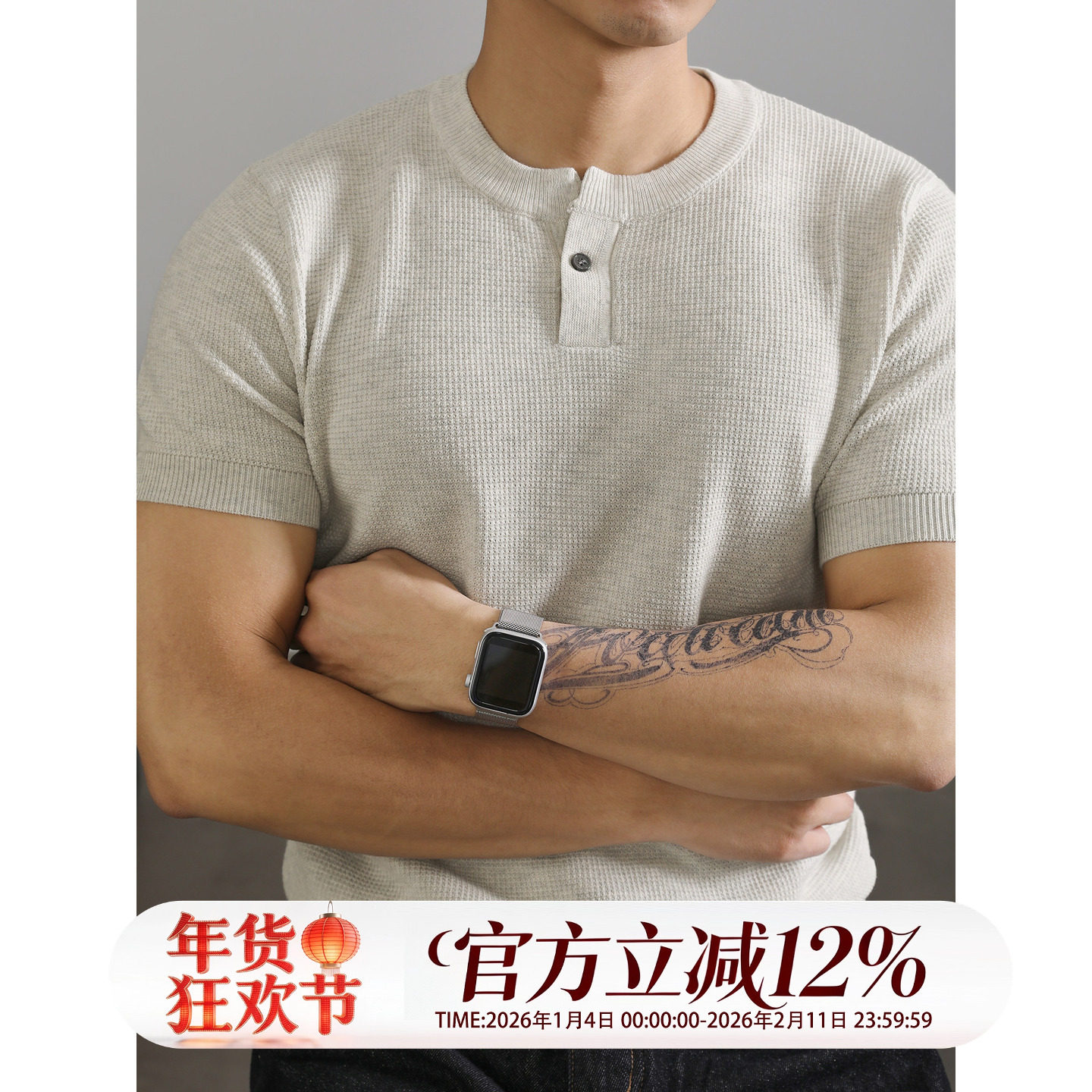 LUUD 亨利领收袖短袖T恤针织衫男高级感针织肌理运动休闲体恤上衣