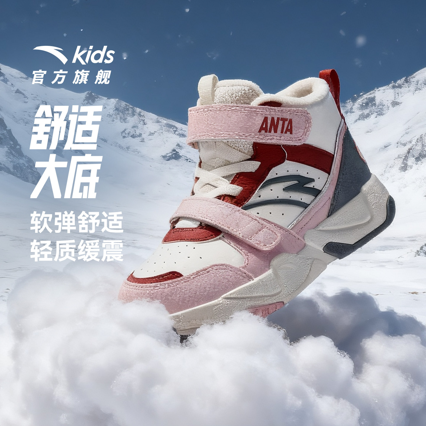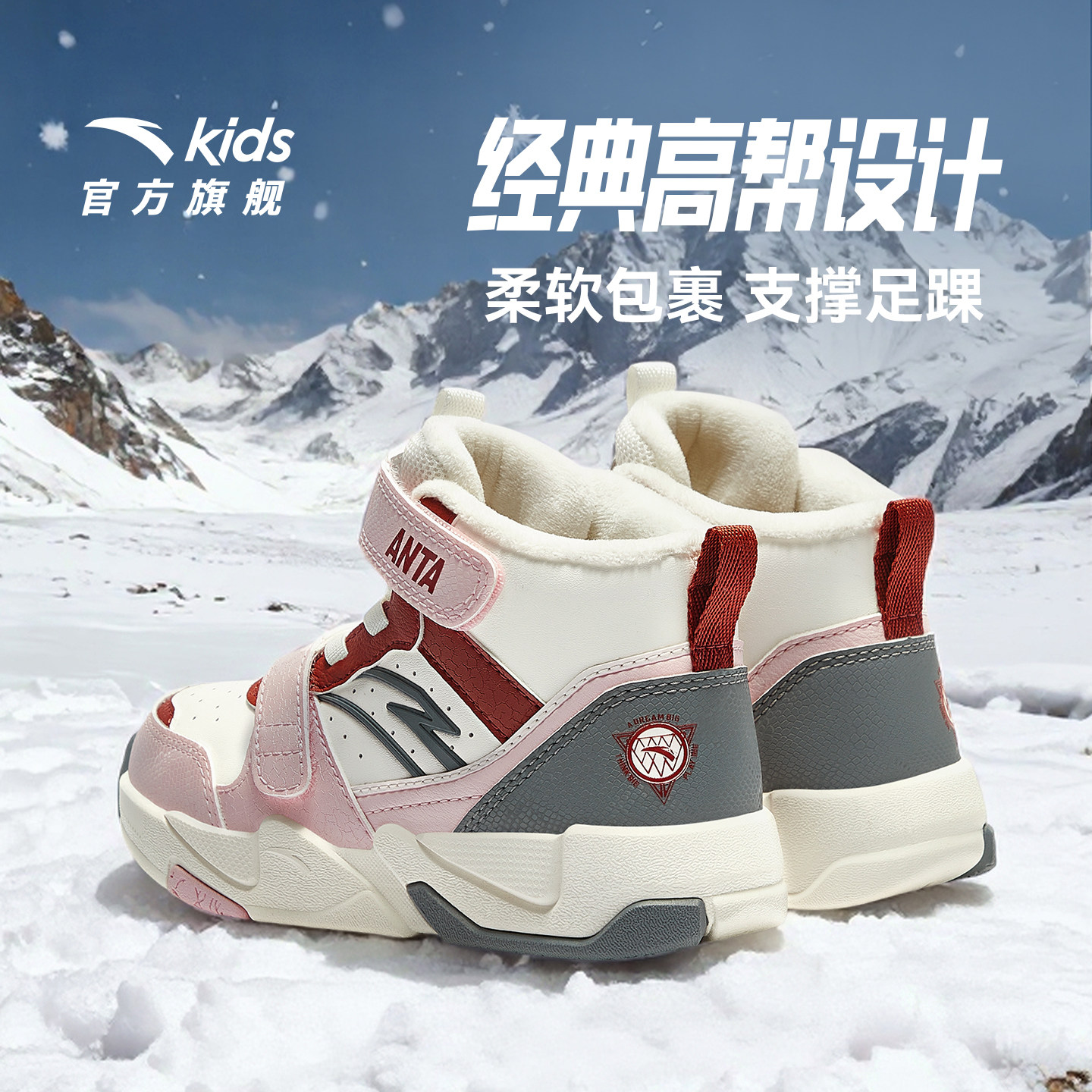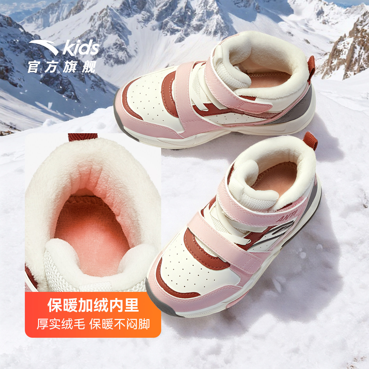 安踏儿童女小童棉鞋童鞋2025冬季新款保暖加绒休闲板鞋潮高帮棉潮