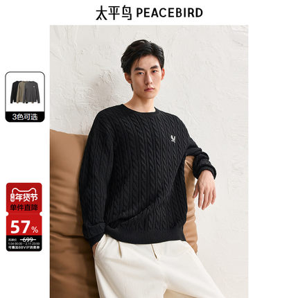 太平鸟男装 休闲毛衣新款慵懒毛衫肌理绞花男休闲毛衫 24冬季热卖