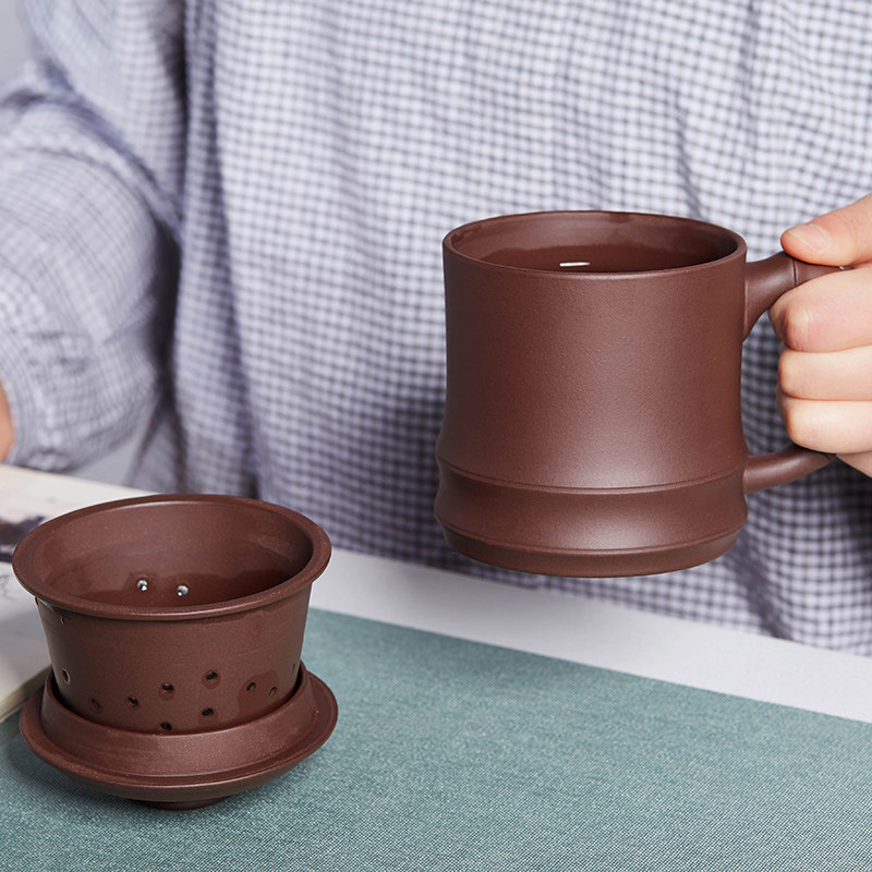 宜兴紫砂泡茶杯内胆过滤盖杯男女办公带把盖杯子茶水分离陶瓷水杯