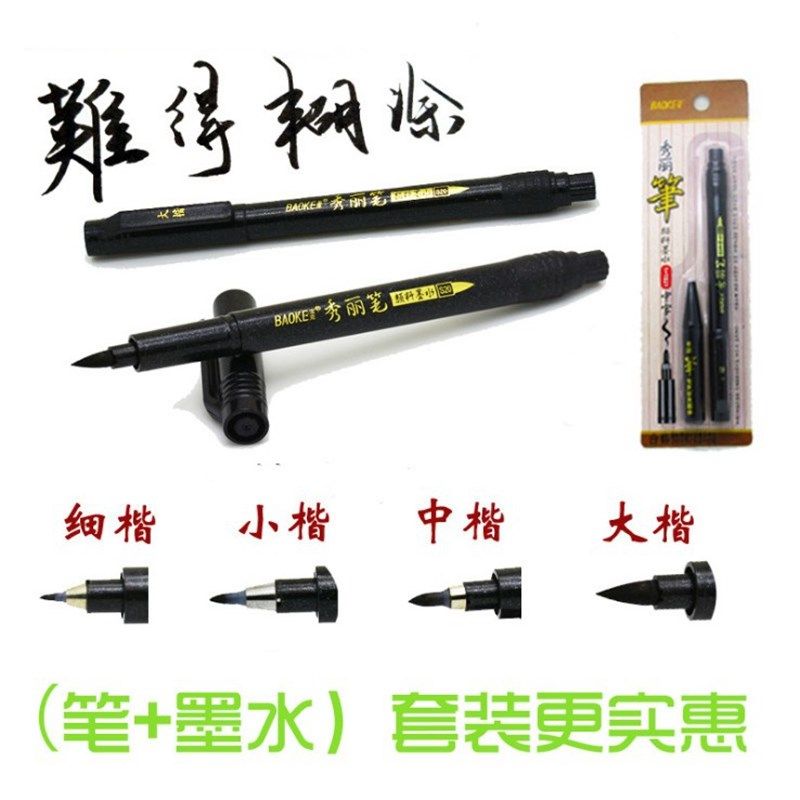 宝克书法笔科学笔秀丽笔便携式软笔大楷中楷小楷可加墨水毛笔