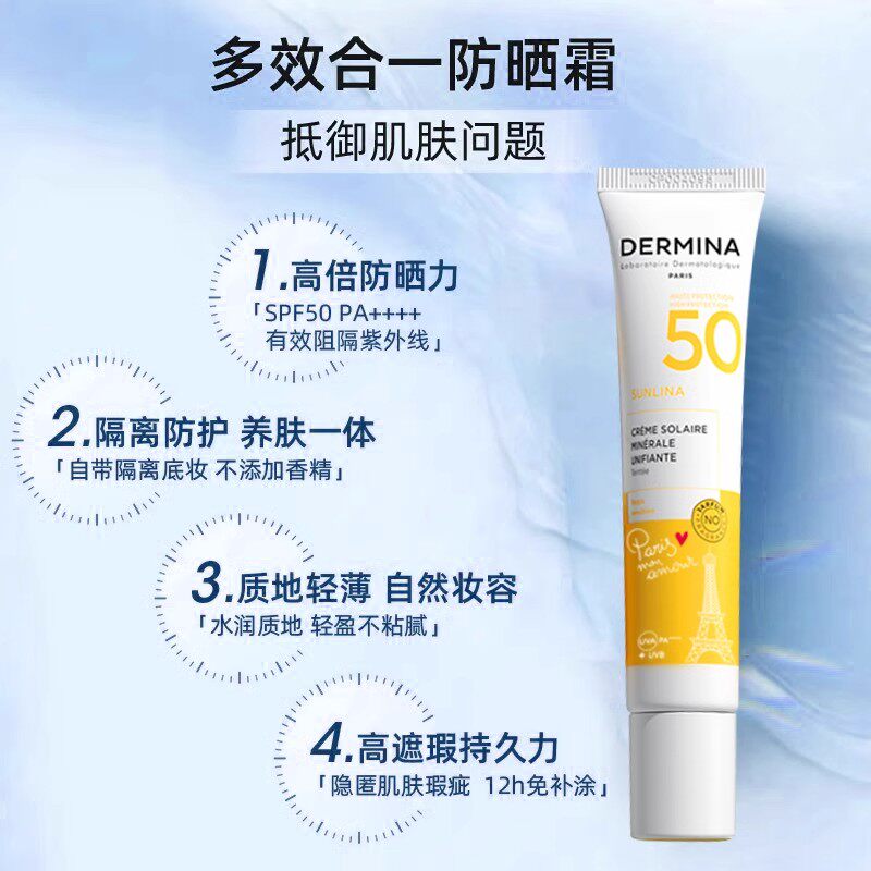 dermina欧敏肤舒缓自然防晒霜spf50PA++++专柜正品纯物理防晒隔离