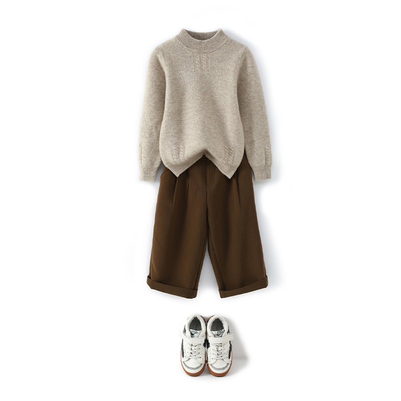 女童羊毛衫圆领宽松毛衣男童套头长袖针织打底衫秋冬厚中大童上衣