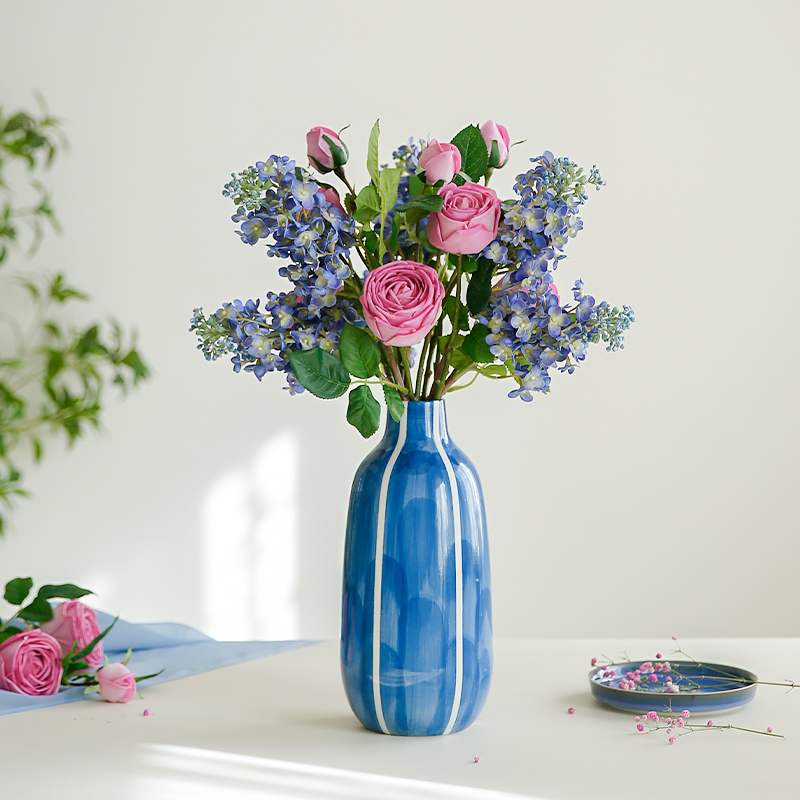 假花仿真花高级感逼真保湿手感玫瑰绣球摆设玫瑰高档假花花束摆件