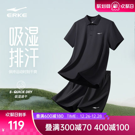 鸿星尔克运动套装男夏季男士运动速干衣爸爸冰丝短袖短裤夏装衣服