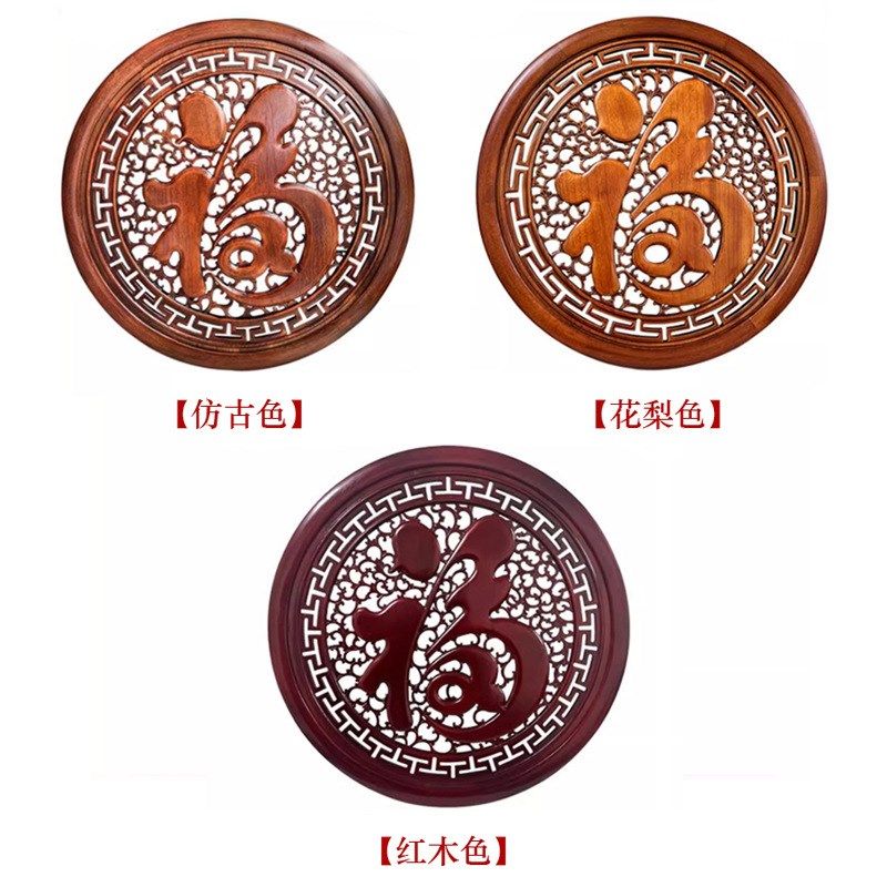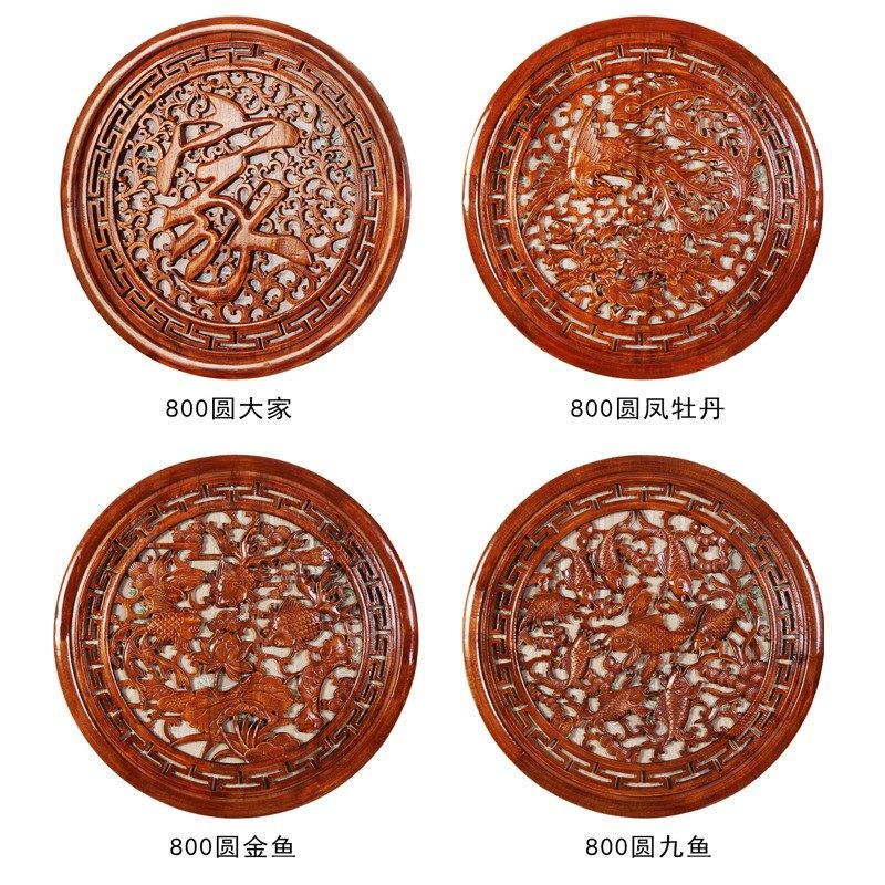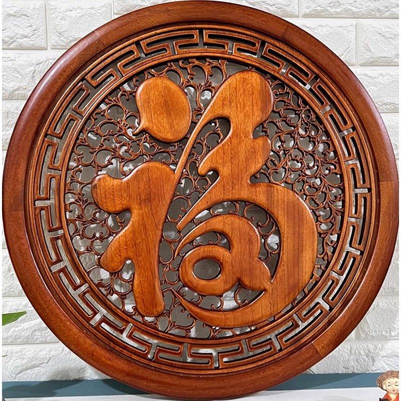 东阳木雕挂件香樟木工艺品仿古中式玄关客厅圆形福实木装饰工艺品