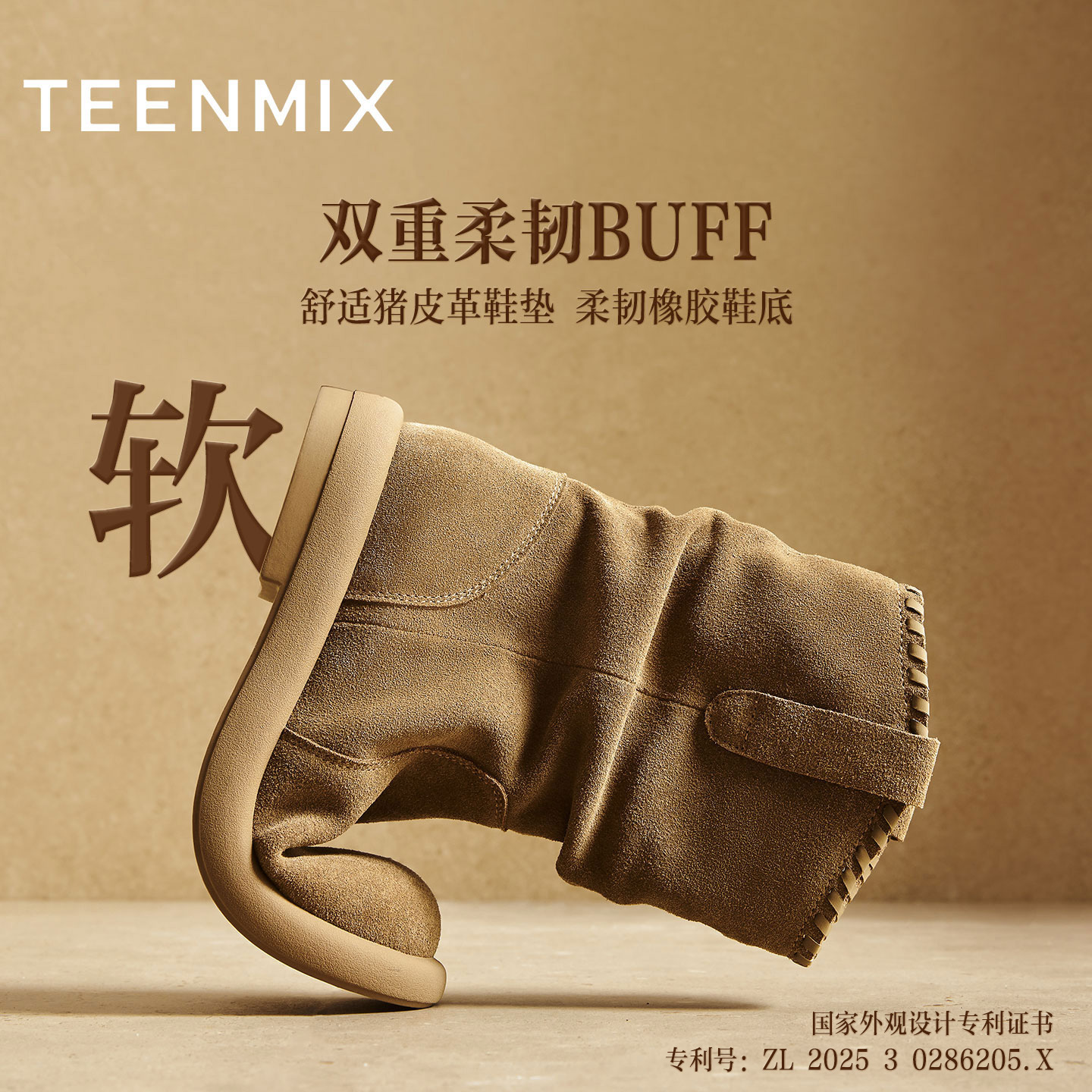 天美意复古黄金V西部靴堆堆靴加绒短靴女鞋子软底时装靴2025新款