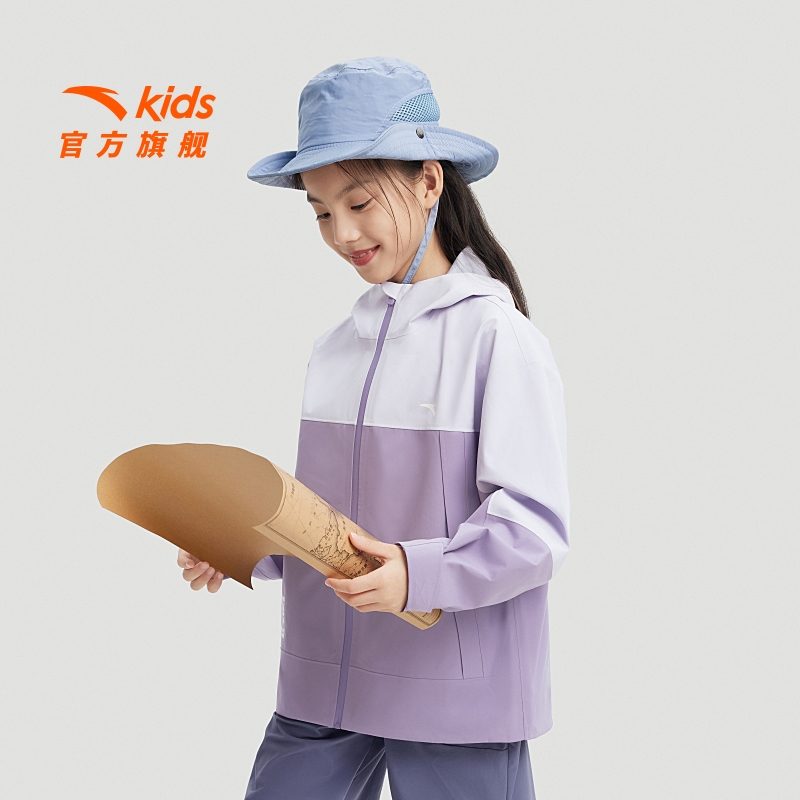 安踏儿童女童冲锋衣春秋新款防风防暴雨户外运动上衣薄外套上衣