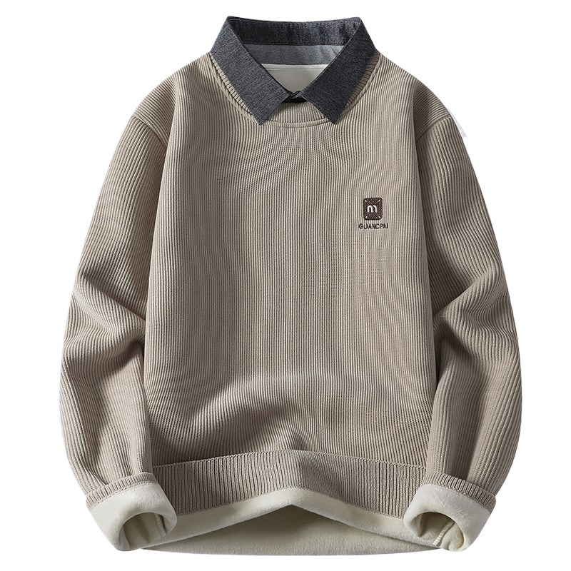 冬季潮流衬衫领毛衣12岁男孩13中学生青少年16加绒加厚针织打底衫