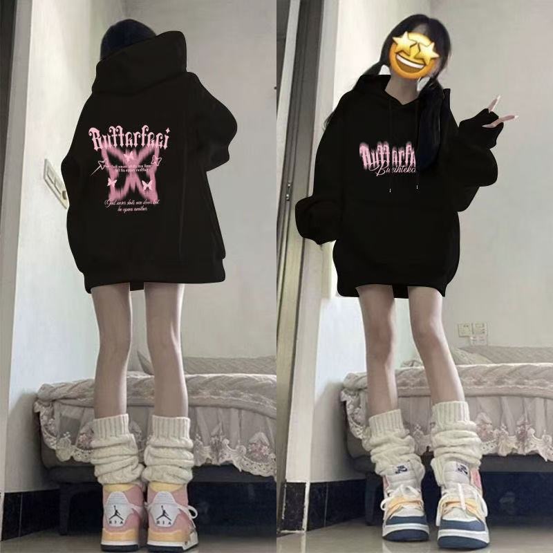 女童美式字母印花连帽卫衣中大童秋冬宽松百搭休闲初中生加绒上衣
