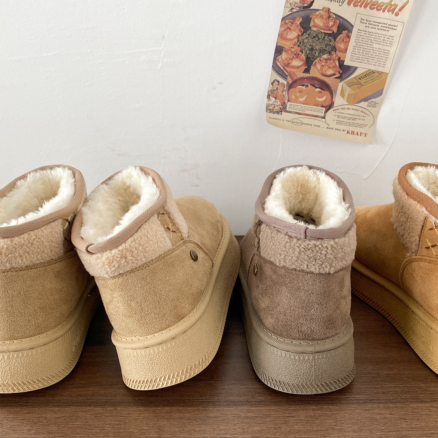 喜叔复古棕色厚底短筒雪地靴女2025新款冬季加绒加厚保暖外穿棉鞋