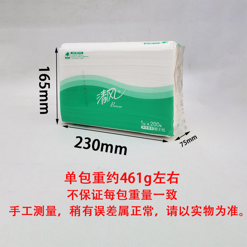 清风200抽折叠加厚擦手纸洗手间用纸商用纸厨房吸水软包抽纸B913A