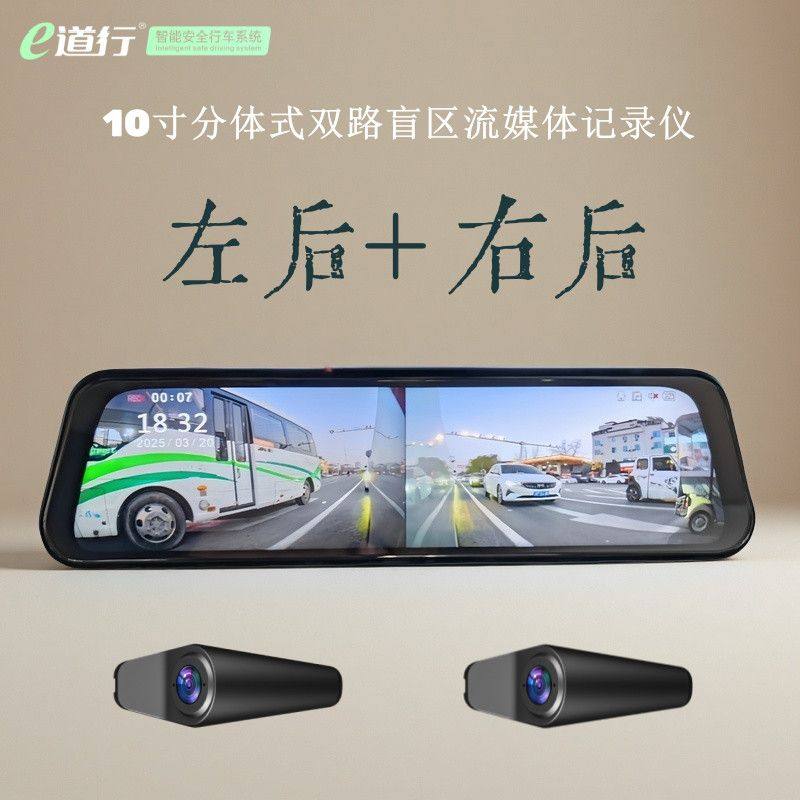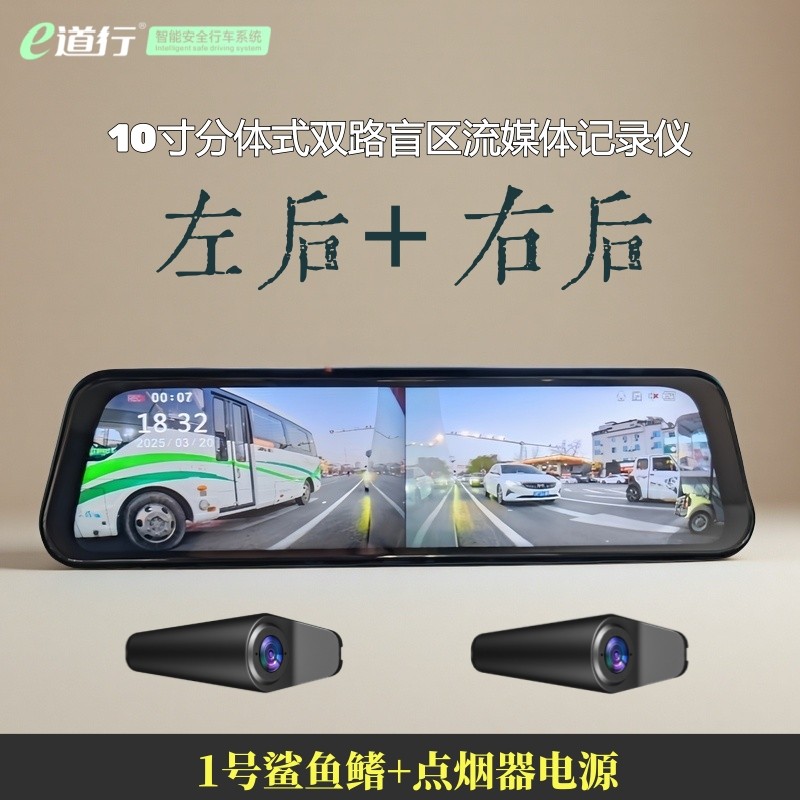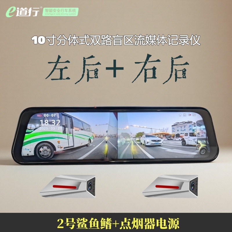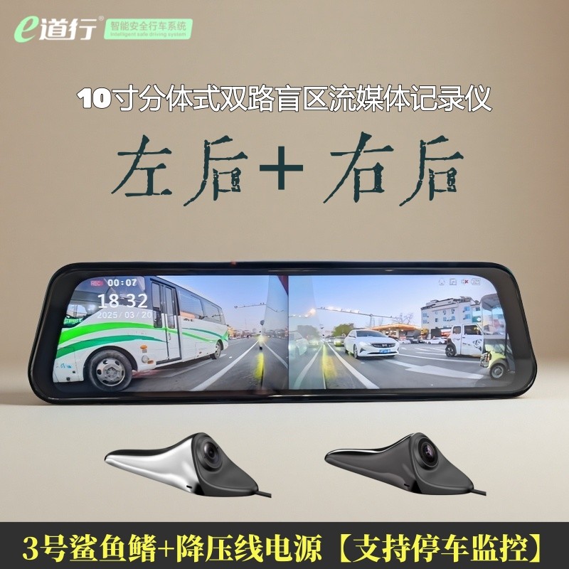 10寸分体式双路左后右后鲨鱼鳍电子后视镜摄像头流媒体行车记录仪