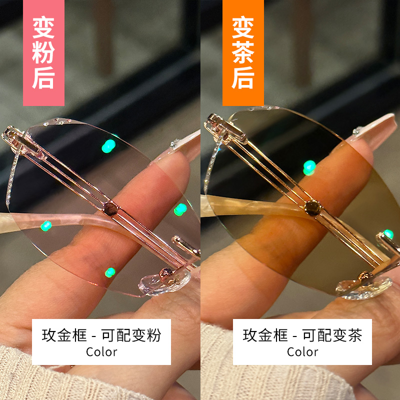 感光变色无框眼镜女近视配度数防蓝光辐射眼睛无边框超轻抗疲劳