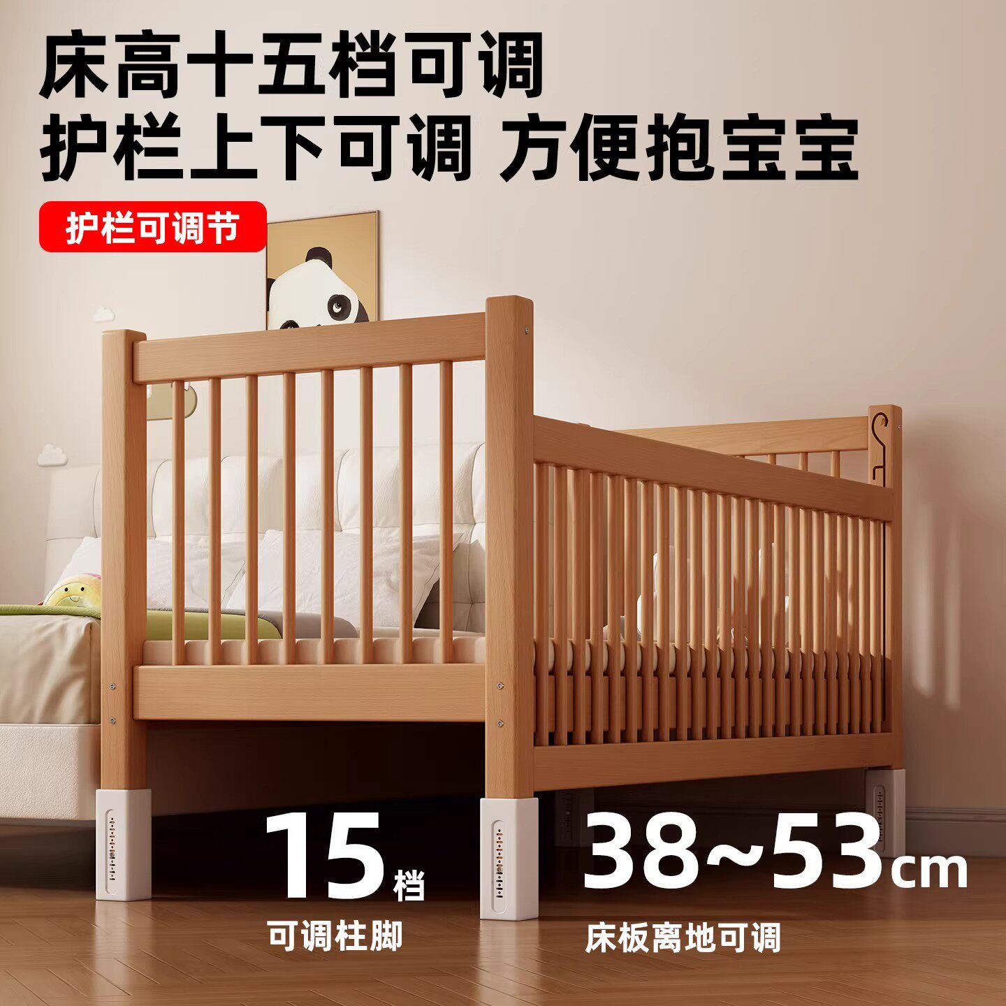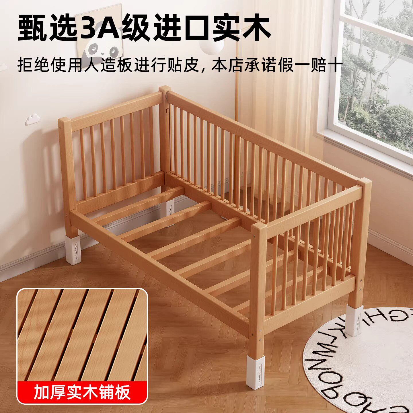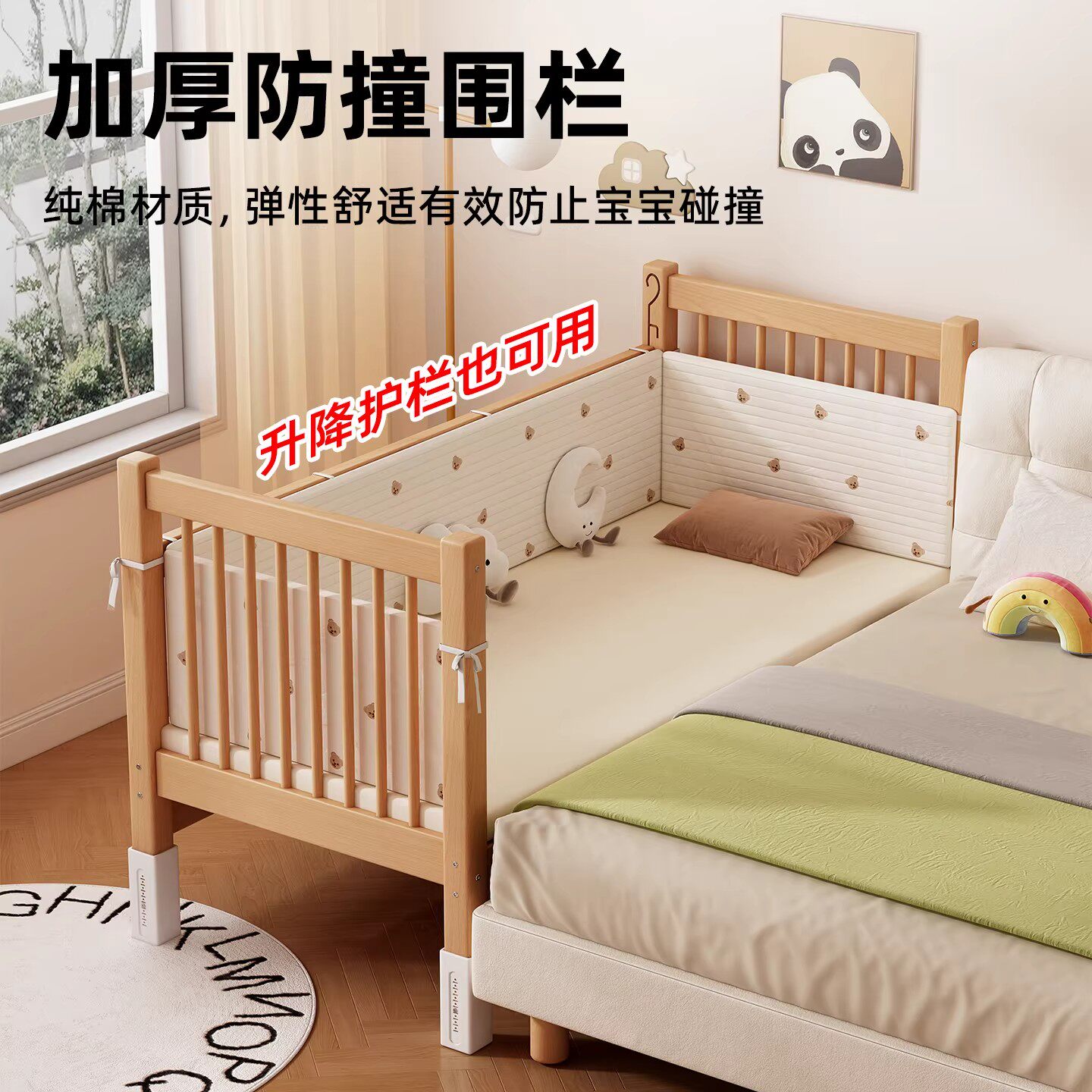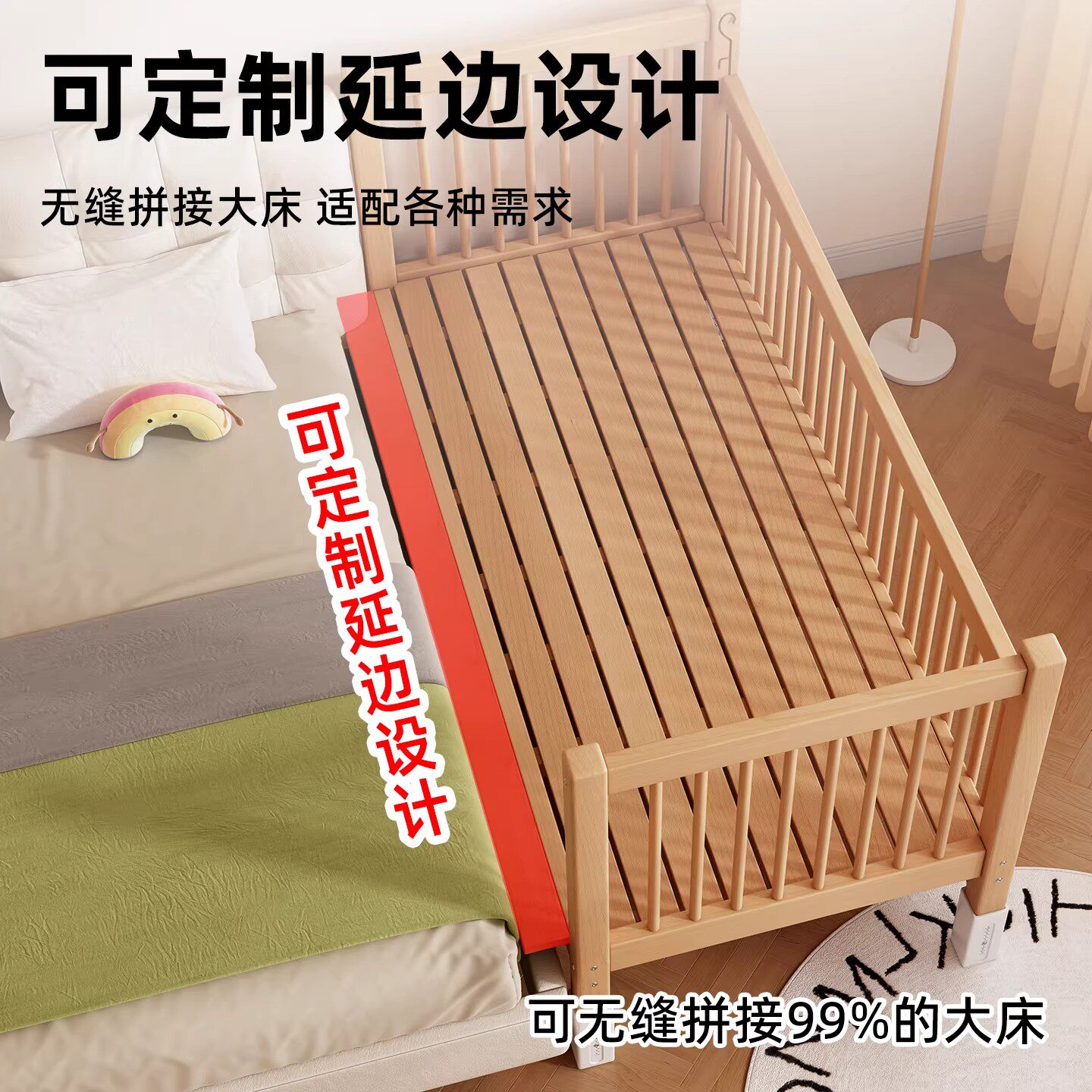 儿童拼接床实木可调节升降加宽床边床宝宝床婴儿床榉木护栏儿童床