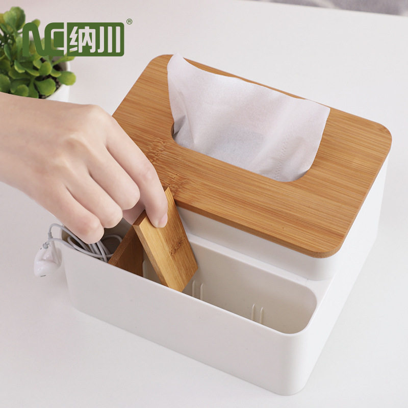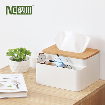 竹木纸巾盒茶几遥控器收纳盒