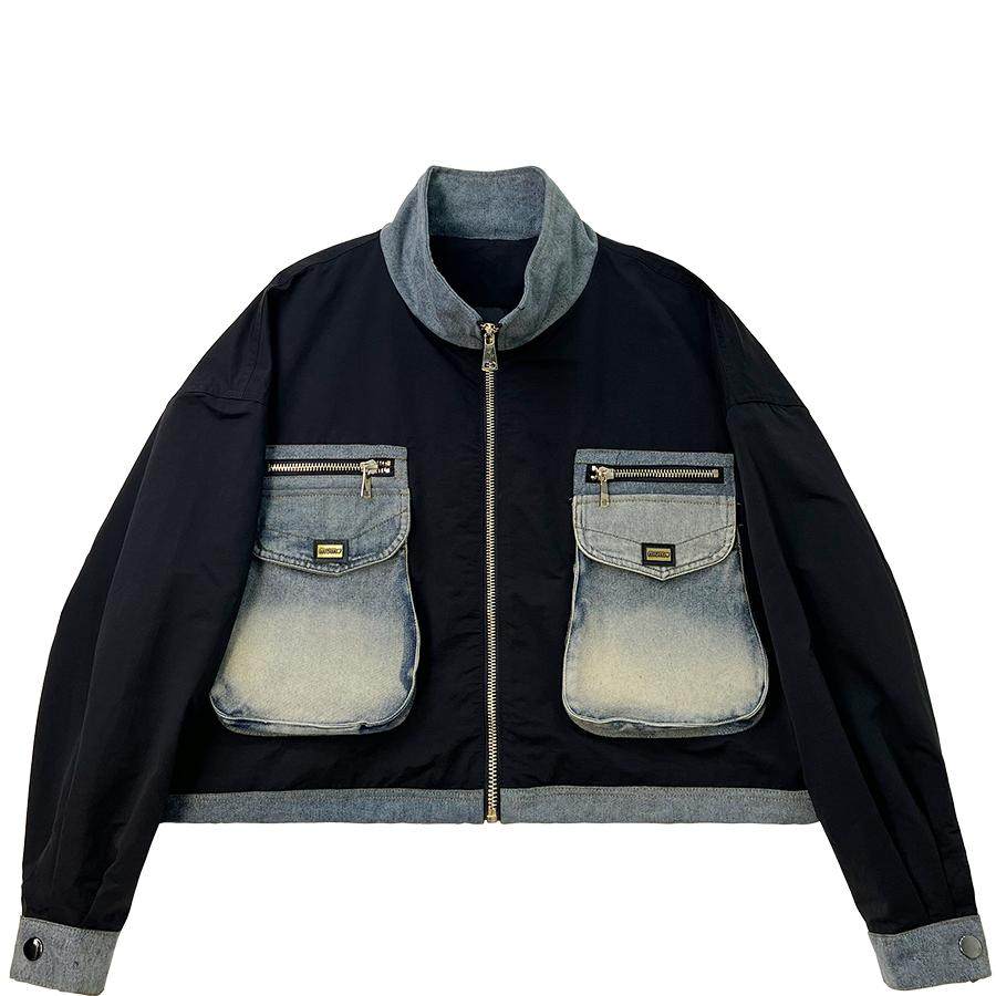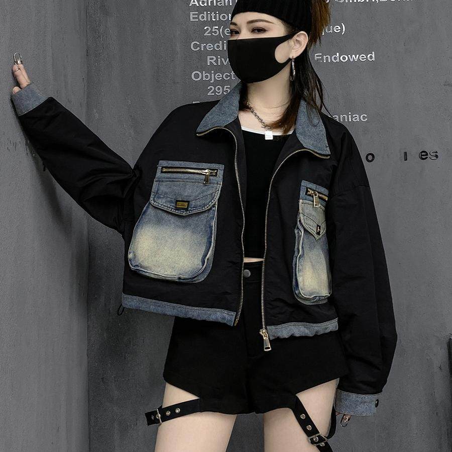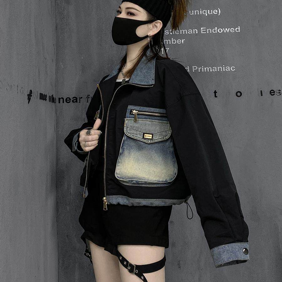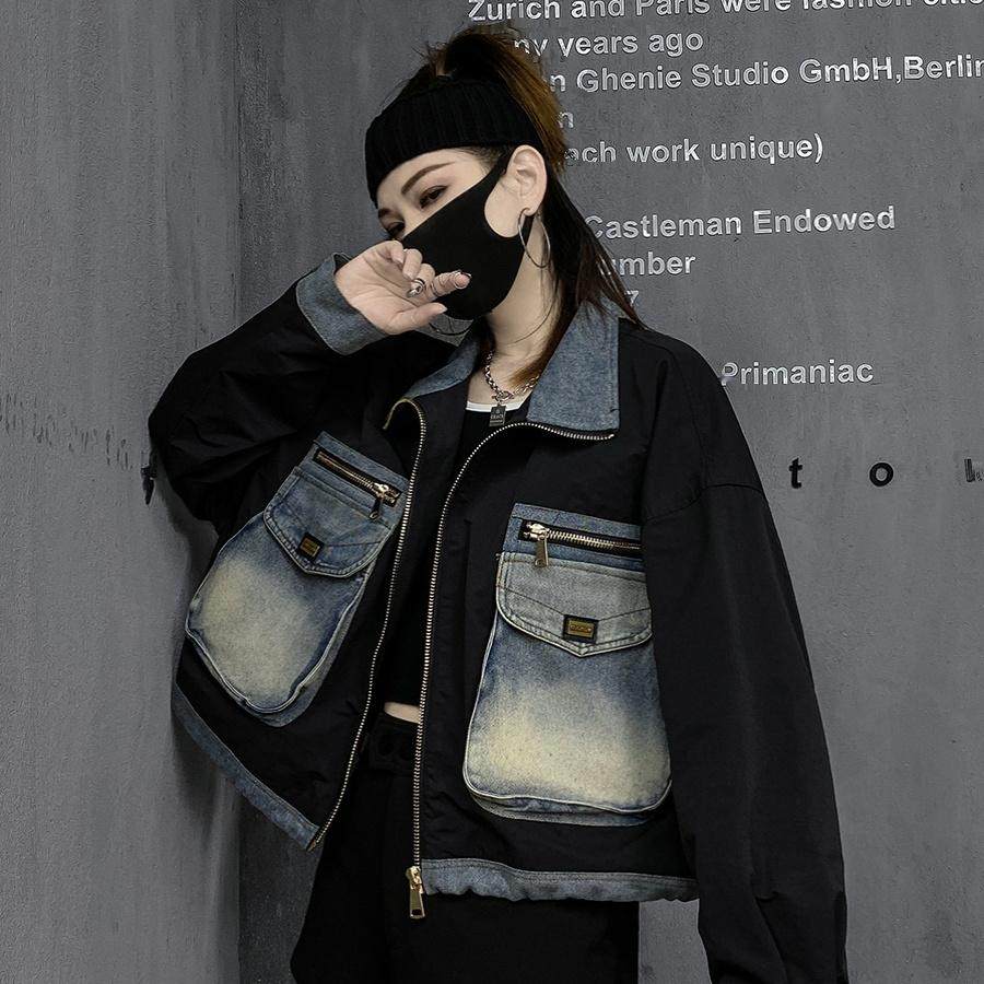 小个子潮牌时尚欧货短款外套女黑色高街棒球服设计感工装牛仔外衣