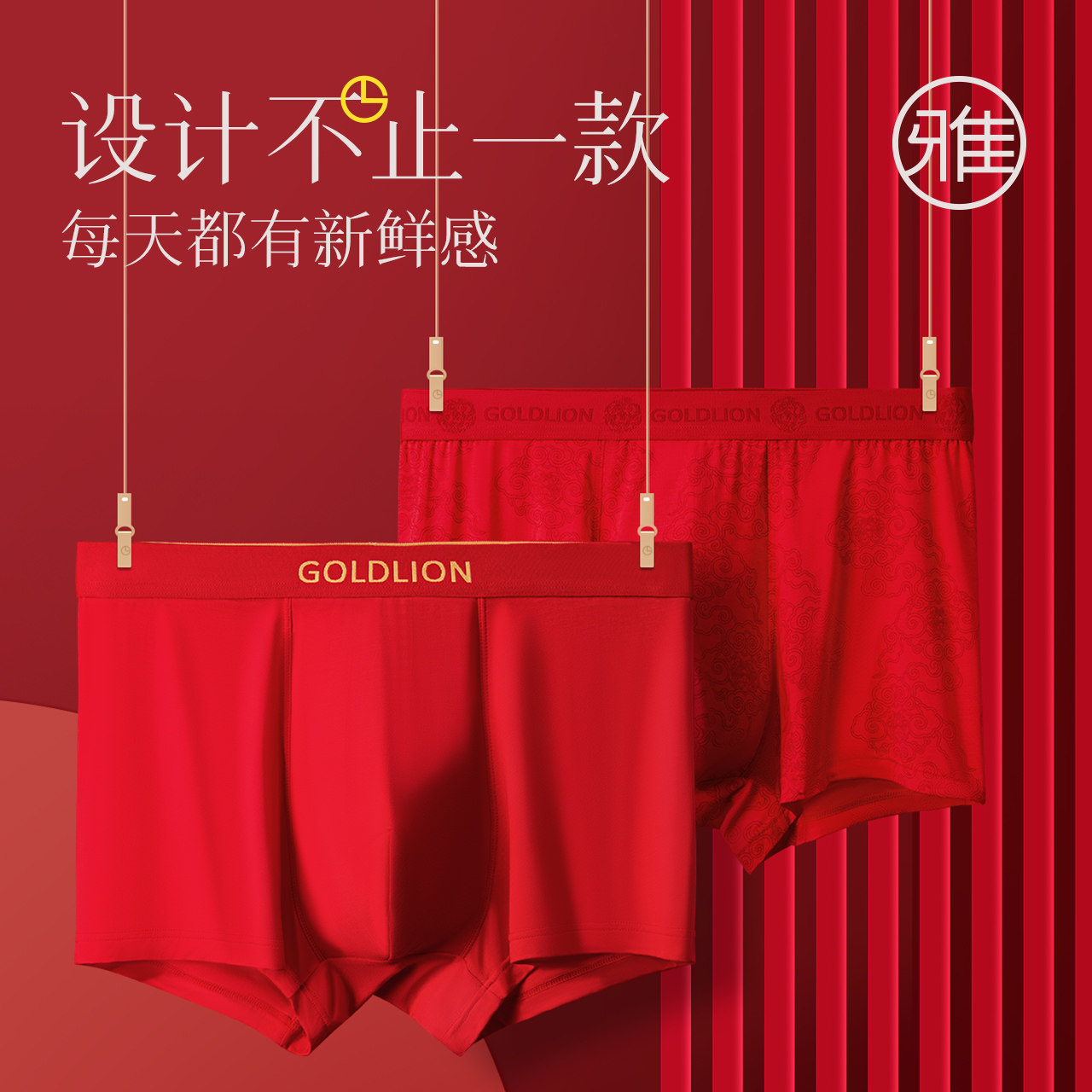 金利来本命年男士大红内裤男款秋冬款男生红色平角裤四角袜子套装