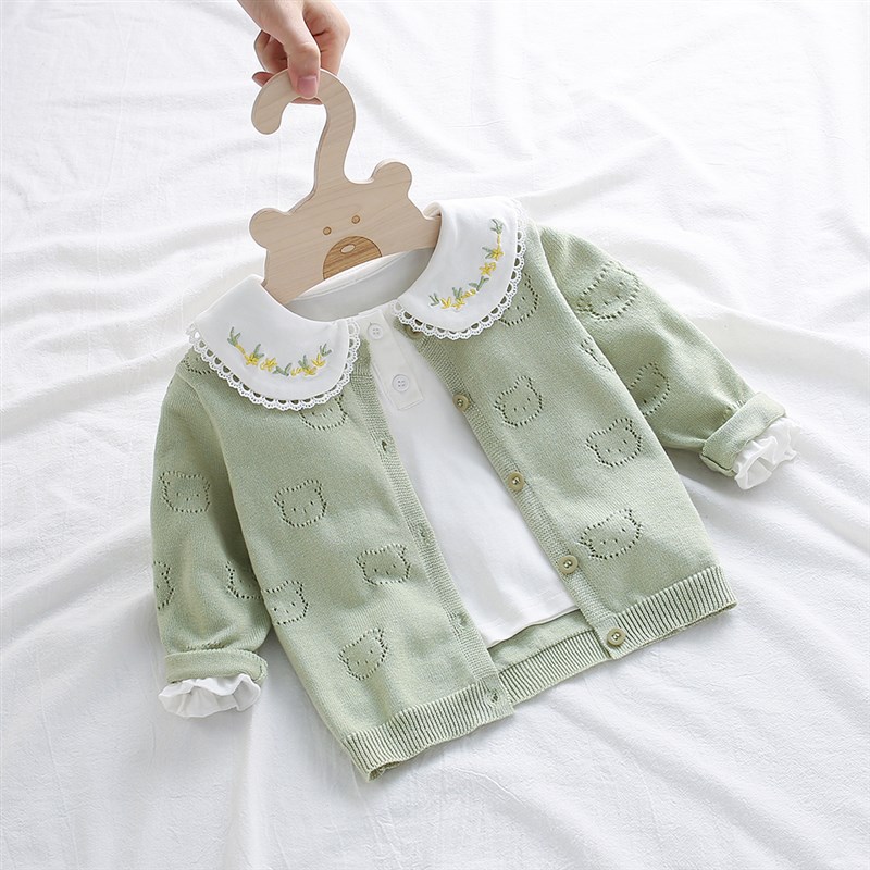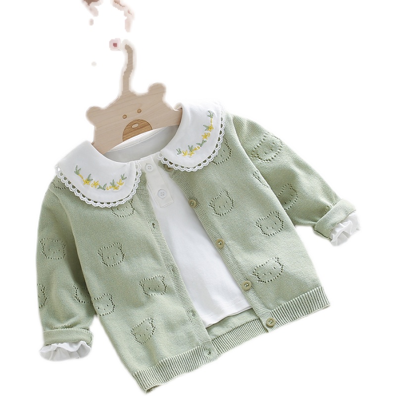 婴儿针织开衫6月宝宝薄款空调衫春夏季1岁女童新生儿毛衣外套纯棉