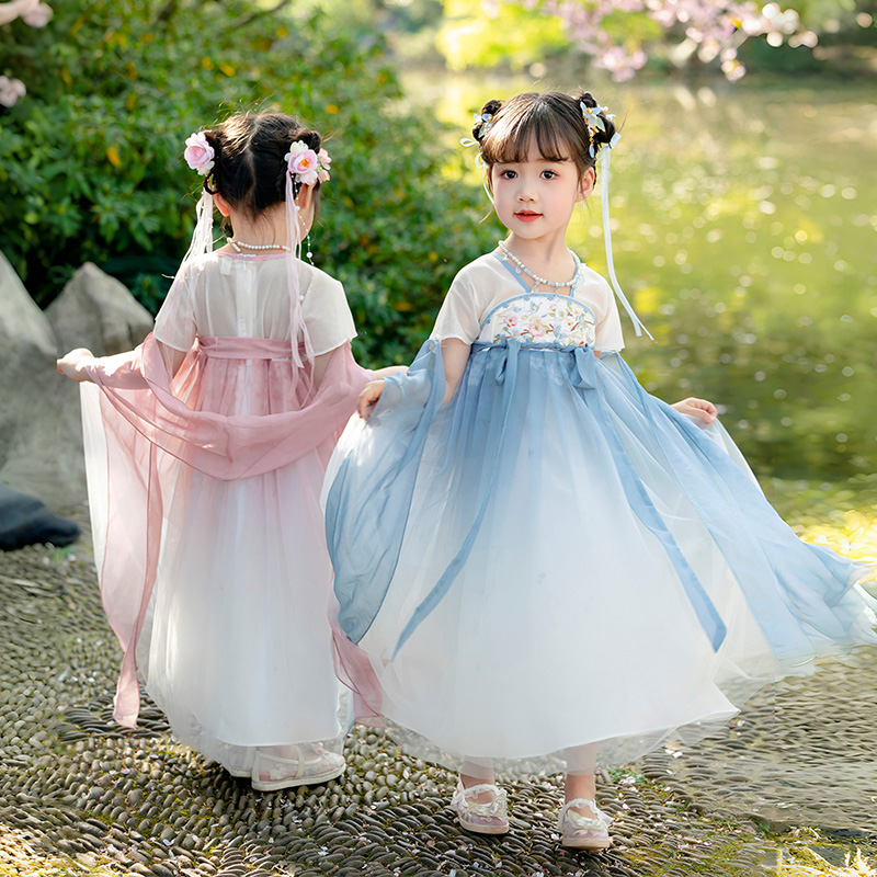 汉服女童2025新款夏款短袖公主襦裙中国风儿童古装古风超仙连衣裙
