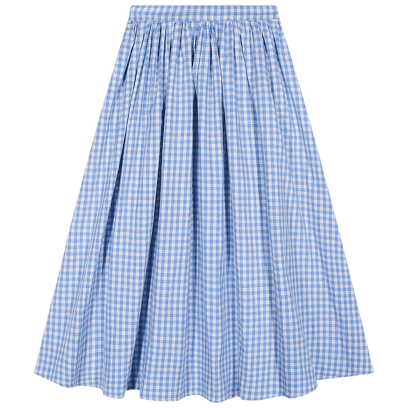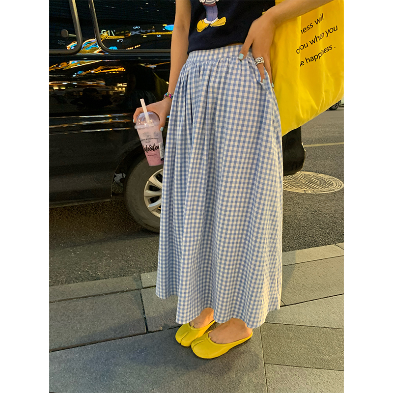 今屿花花 格子半身裙女2025新款夏季半身长裙a字裙蓝色高腰法式