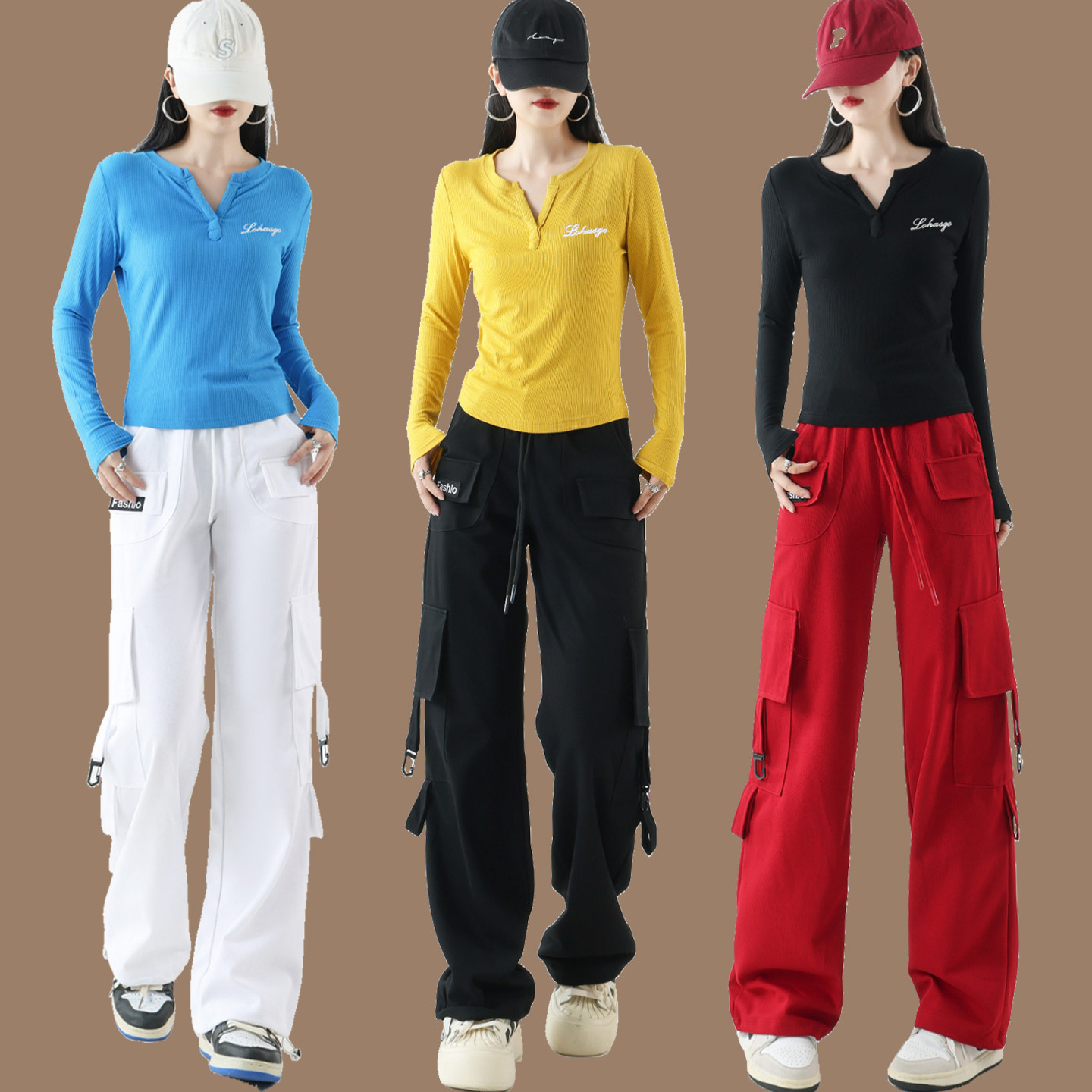 广场舞服装新款套装春秋季长袖工装裤时尚曳步舞健身操跳舞衣服女