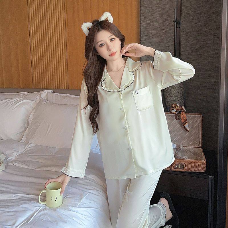 2026年春季新款睡衣女高级感冰雪丝纯色简约甜美家居服套装可外穿