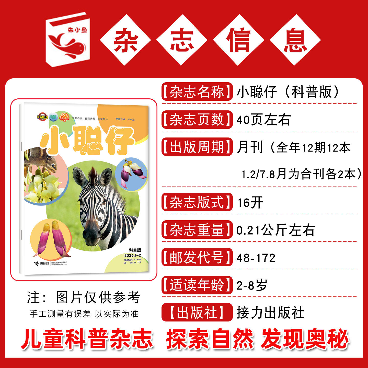 小聪仔科普版杂志2026年1-2/3月现货【全年/半年订阅/2025全年】婴儿启蒙版幼儿版0-4-8岁宝宝儿童娃娃画报科普百科自然探索过刊