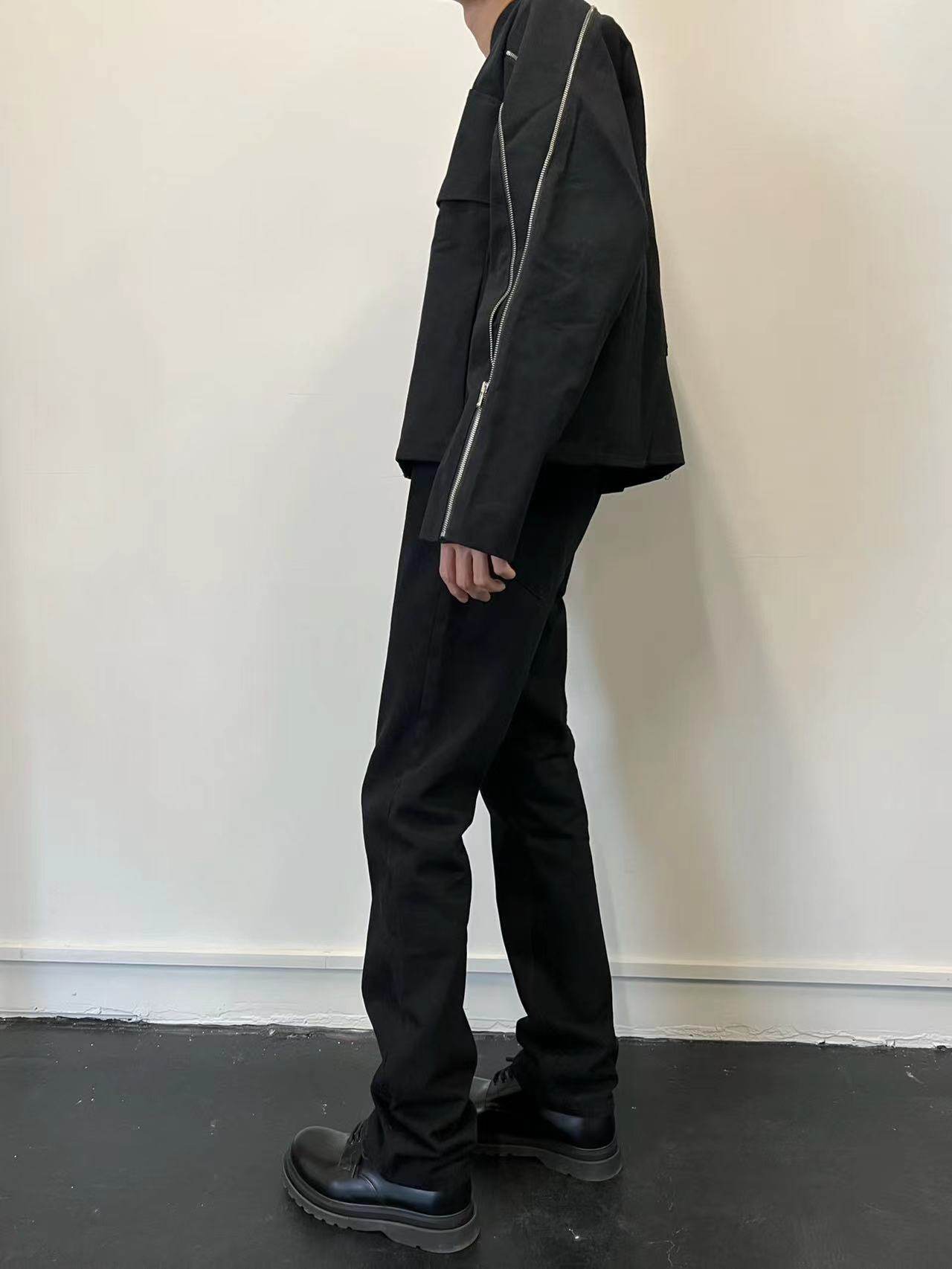 AMBSOM 22AW 黑色重磅高盎司直筒无弹修身合体纯棉水洗牛仔长裤