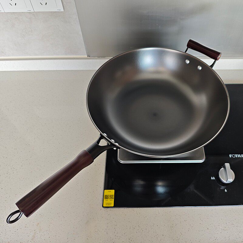 香港正品陈枝支记生铁锅炒锅 平底燃气灶电磁炉适用 无涂层不生锈