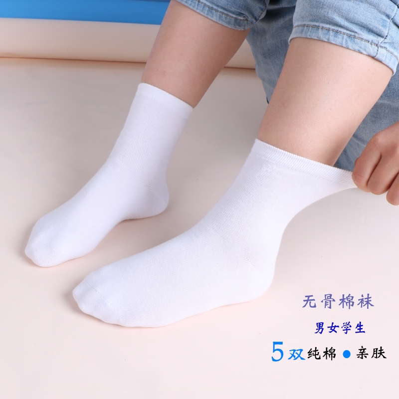 儿童袜子纯棉男童无骨袜春夏款学生灰底白袜女孩中大童中筒袜黑色
