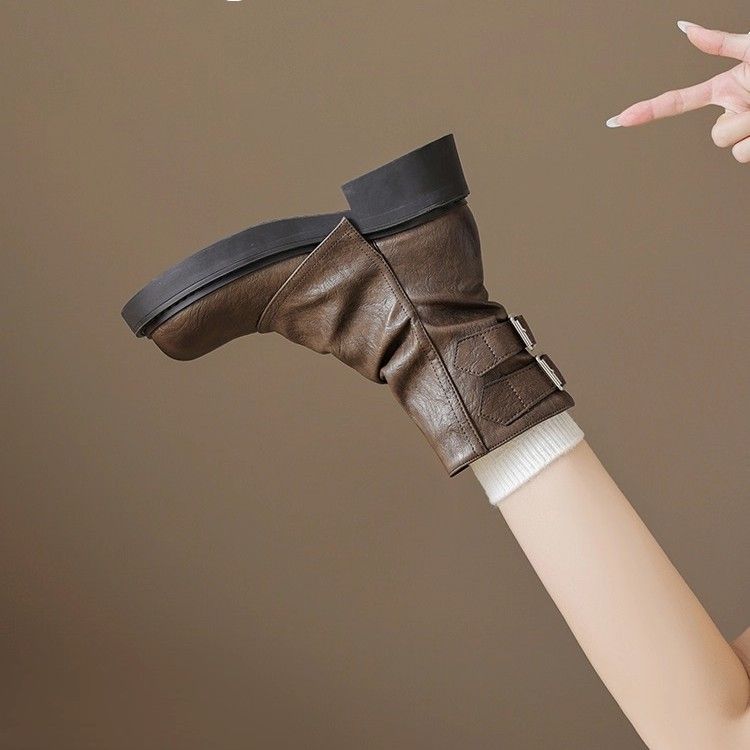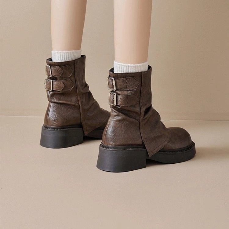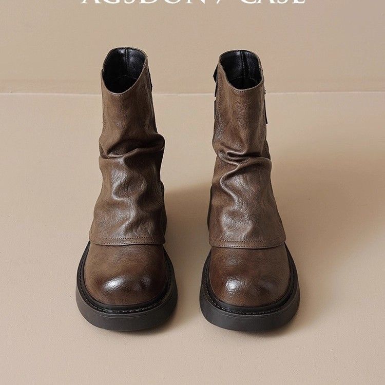 马丁靴女2025新款夏季美拉德堆堆短靴厚底棕色靴子裤管西部牛仔靴